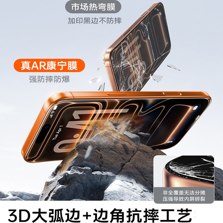 【康宁膜】第一卫适用iPhone17promax钢化膜苹果16/15pro手机14贴膜13全屏12覆盖pm保护AR防摔抗反射air新款e