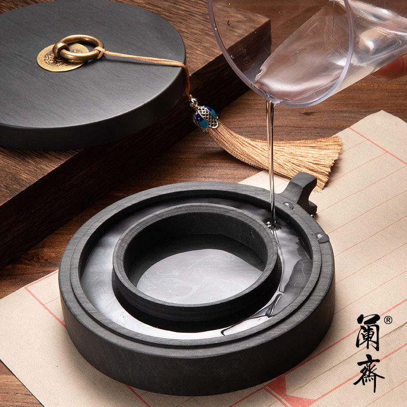 升级款双圈保湿防蒸发不干墨砚台毛笔墨水书法专用带盖墨盒墨台墨盘磨墨素砚墨碟墨汁火锅砚可磨墨天然原石