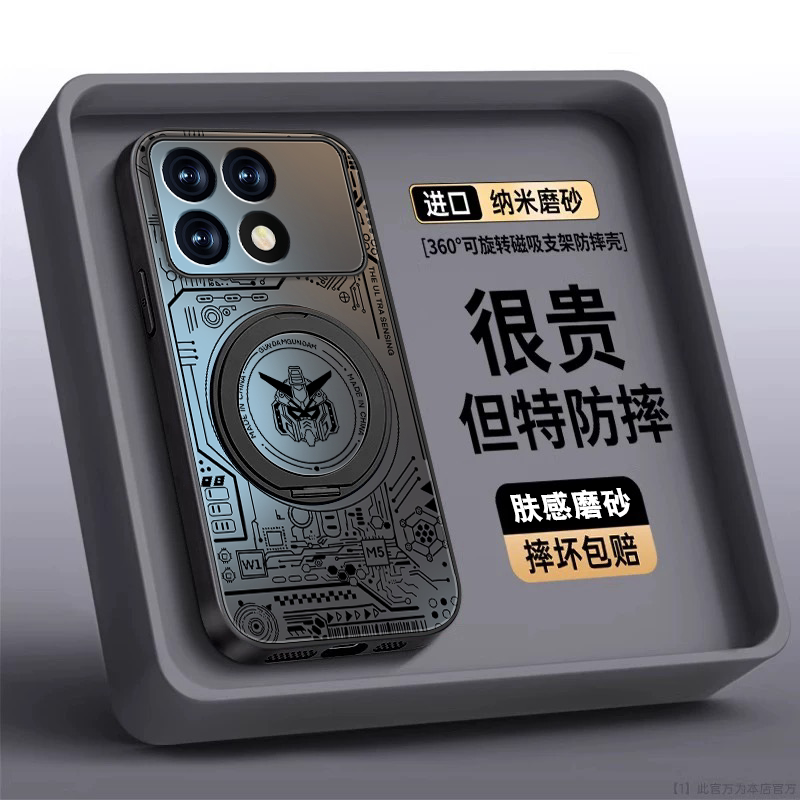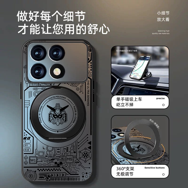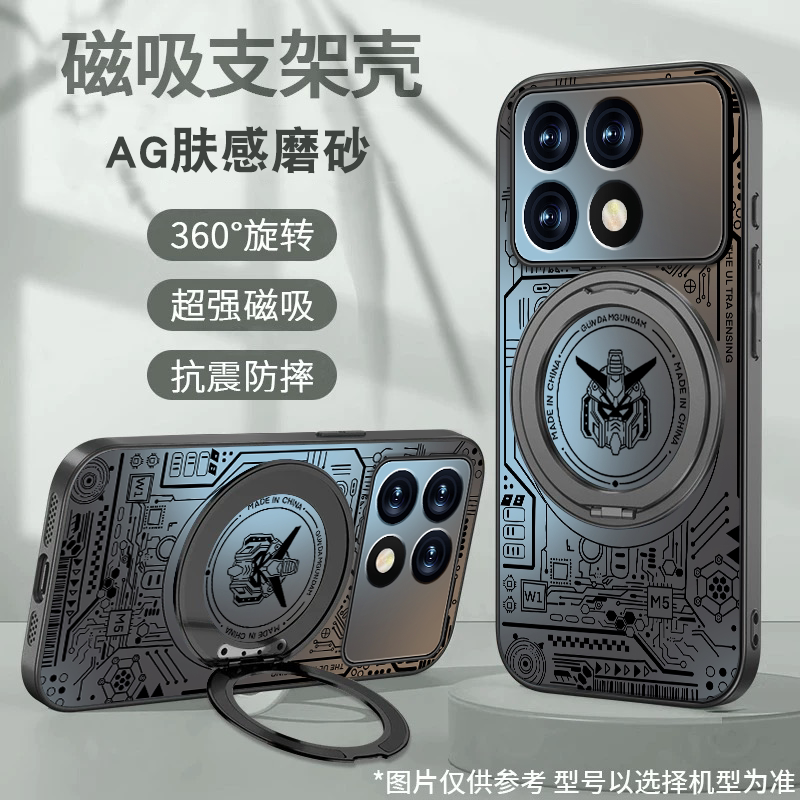 适用红米k70手机壳新款Redmik70至尊版肤感磨砂k60pro磁吸旋转支架k70e套K50线条高达K40PRO+男全包防摔外壳