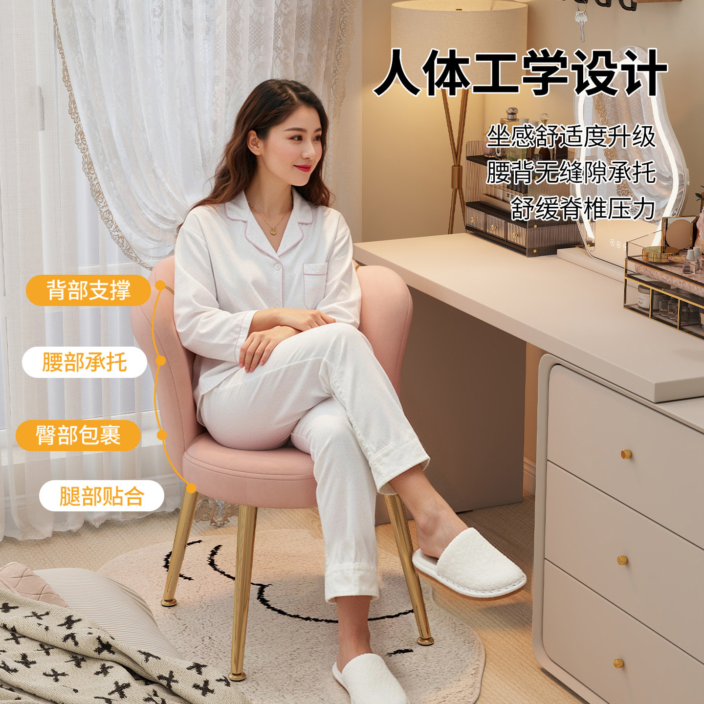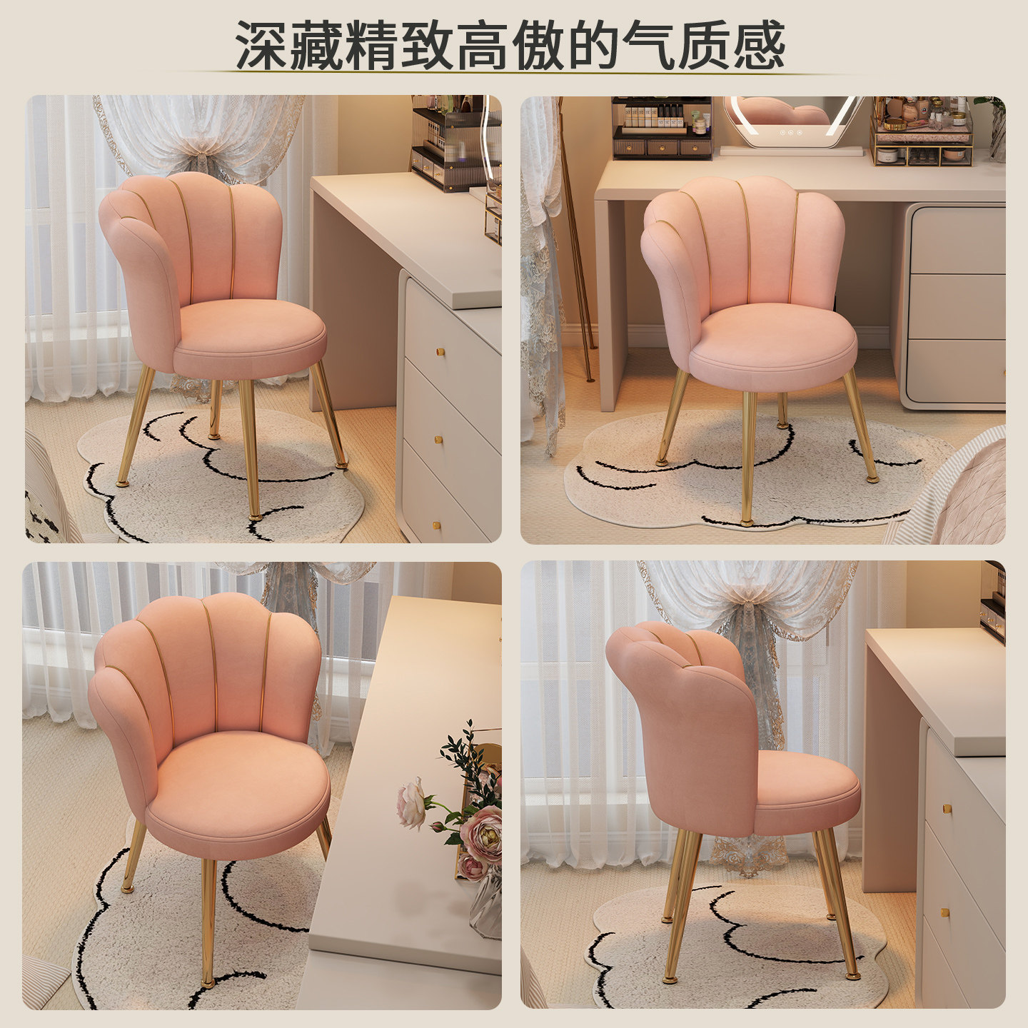 化妆椅家用女生卧室梳妆台专用靠背椅新款轻奢高级感花瓣椅梳妆凳