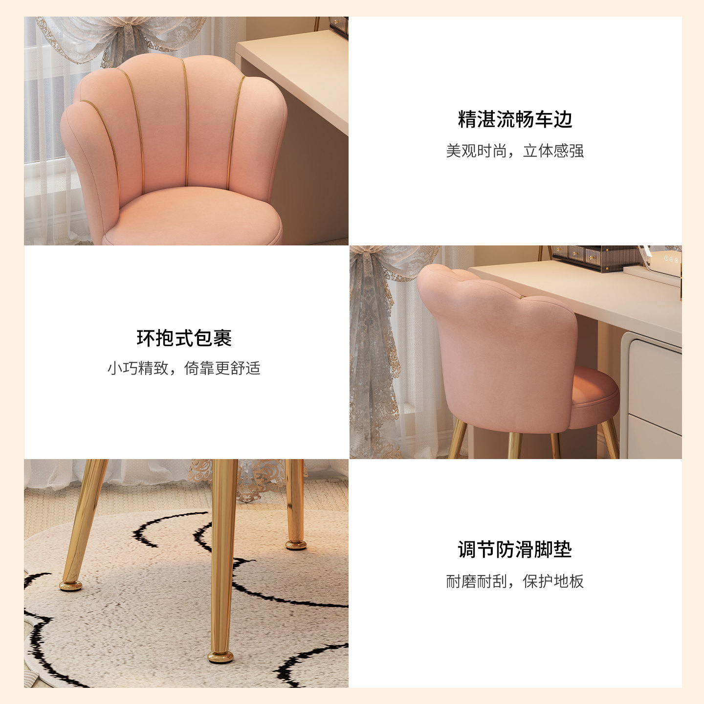化妆椅家用房间靠背简约美甲花瓣凳子轻奢高级女生卧室梳妆台椅子