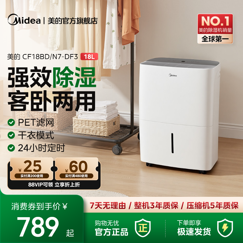 美的家用18升除湿机抽湿客厅卧室回南天梅雨季除湿神器18DF3