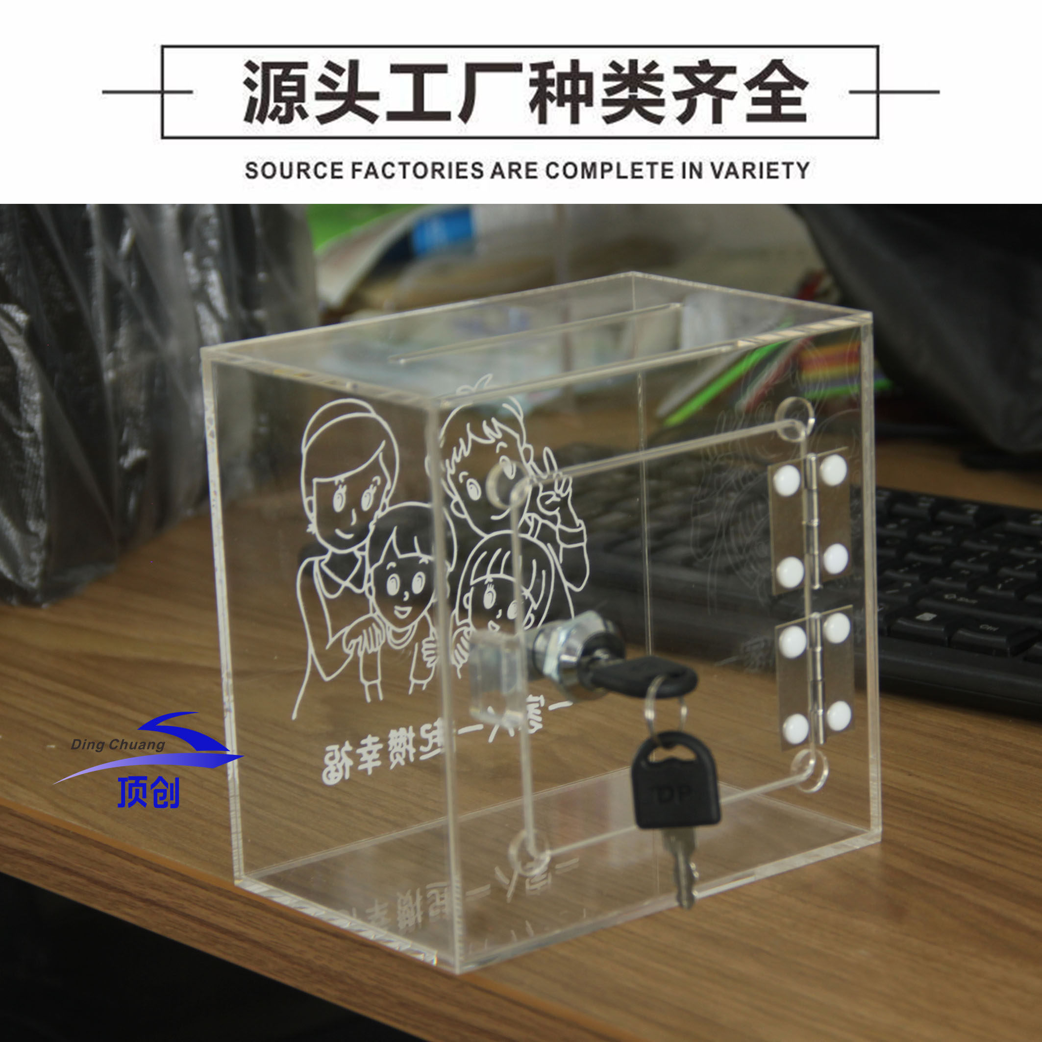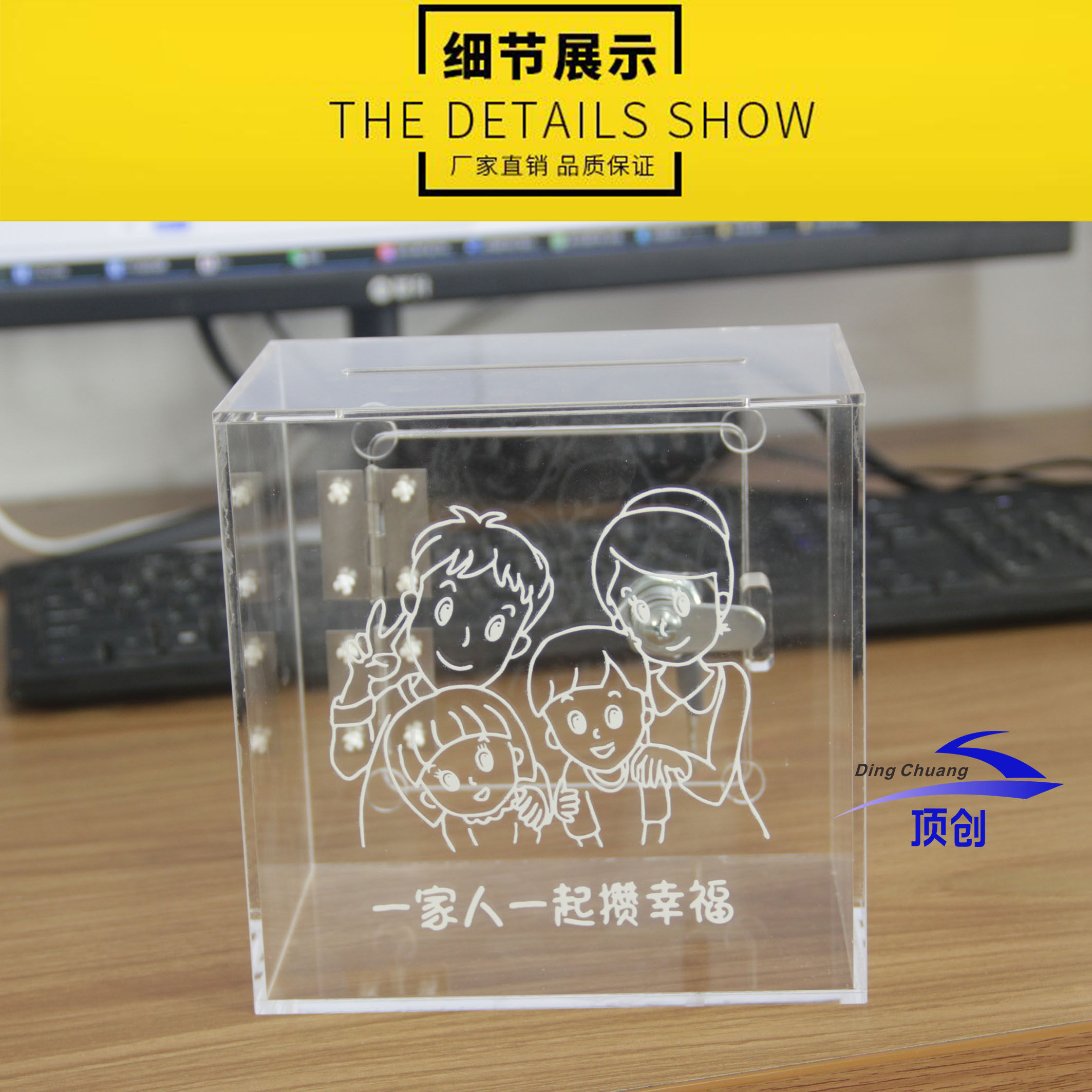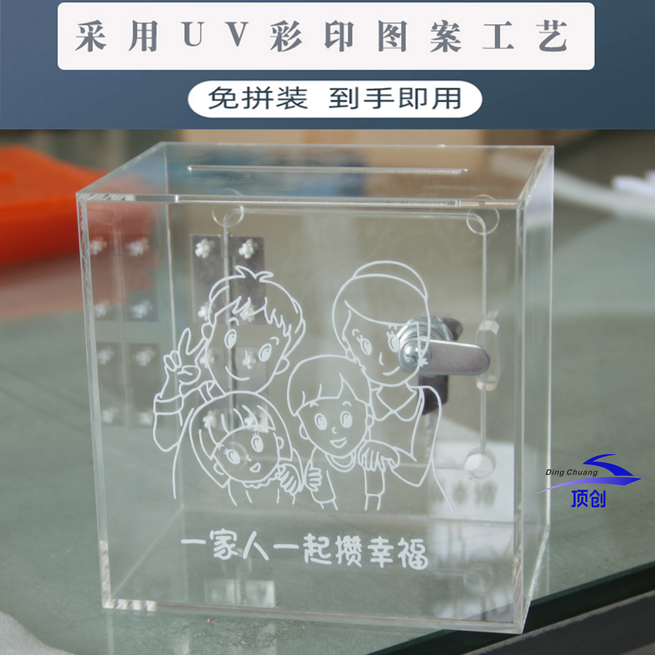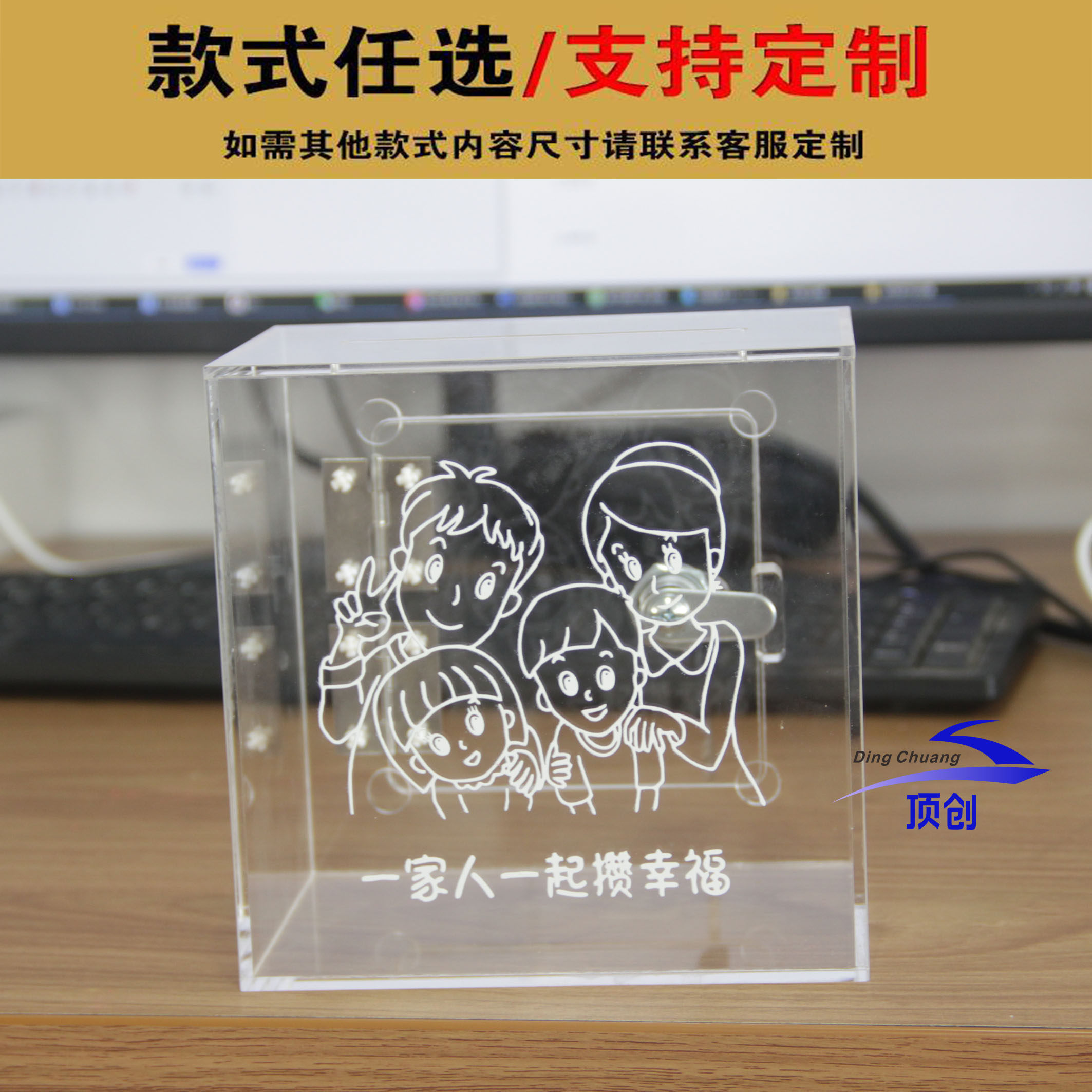 亚克力全透明钱箱带锁定制创意图案 小费零钱收纳盒 存钱基金箱