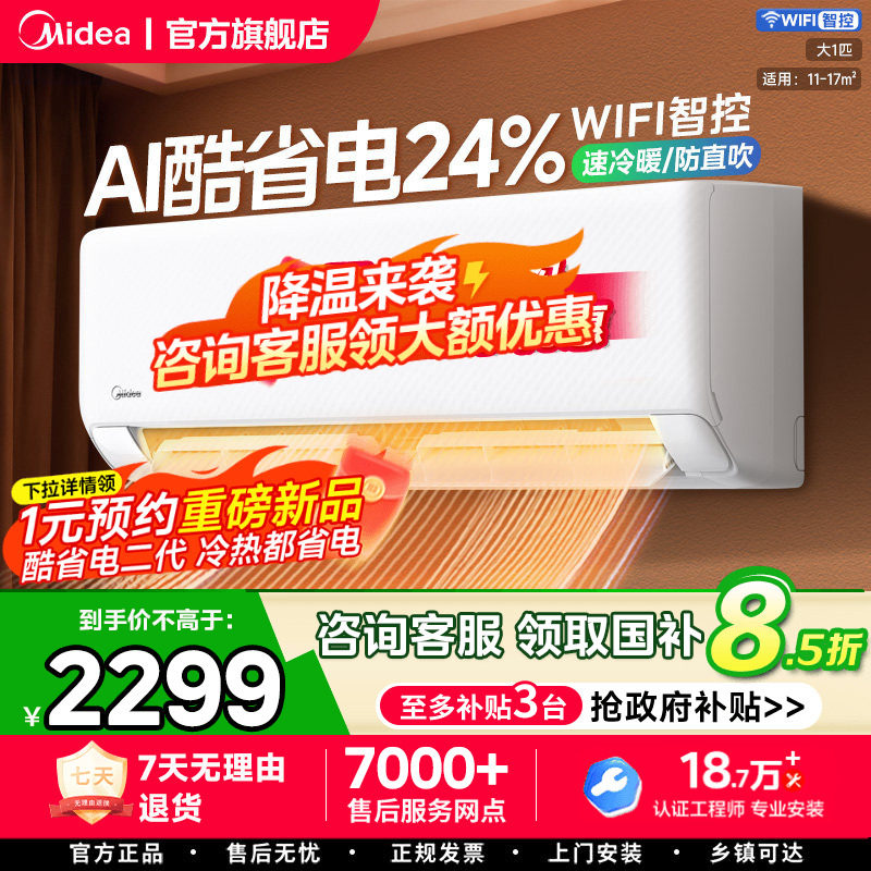 美的空调酷省电Pro大1匹1.5匹一级能效变频冷暖家用挂机官方正品