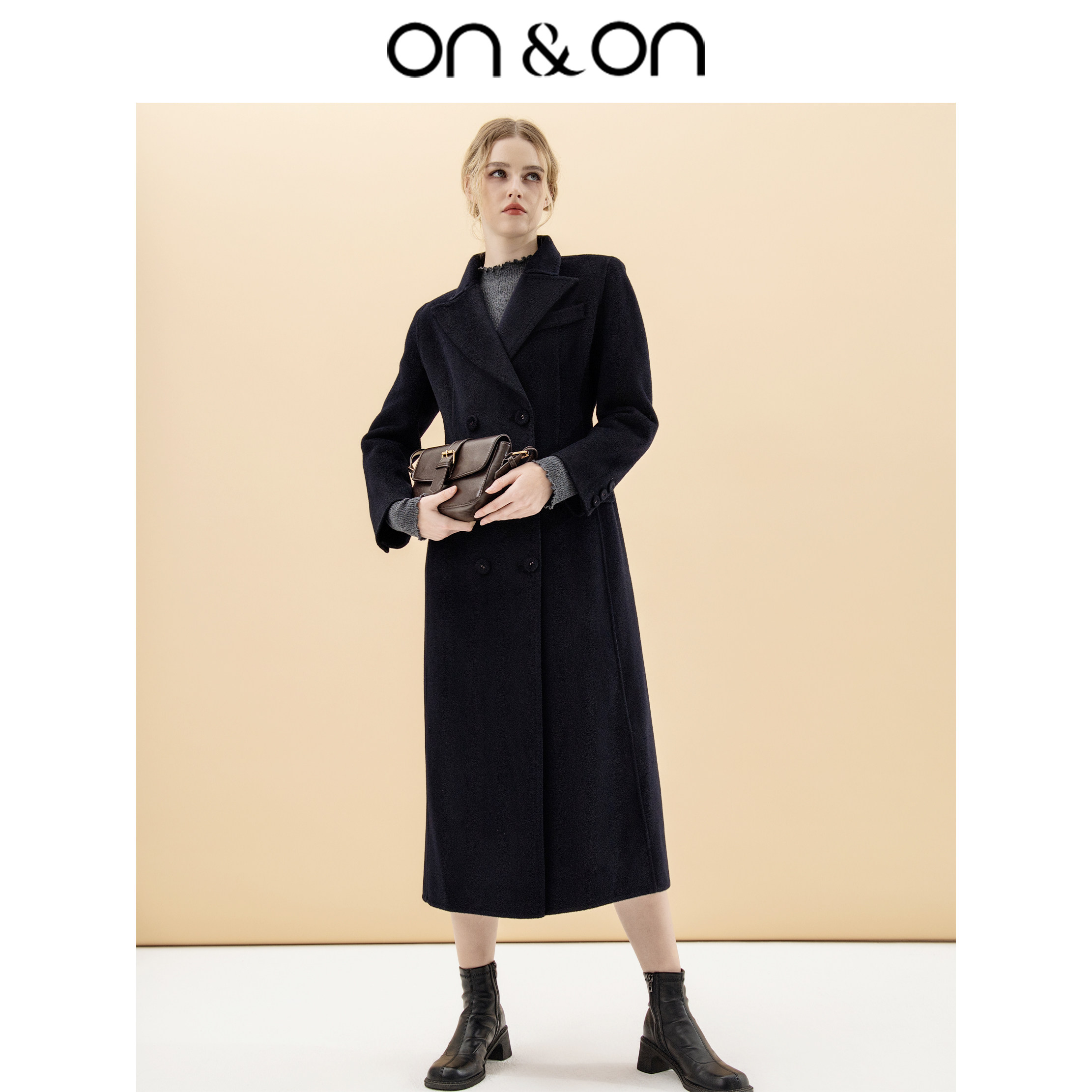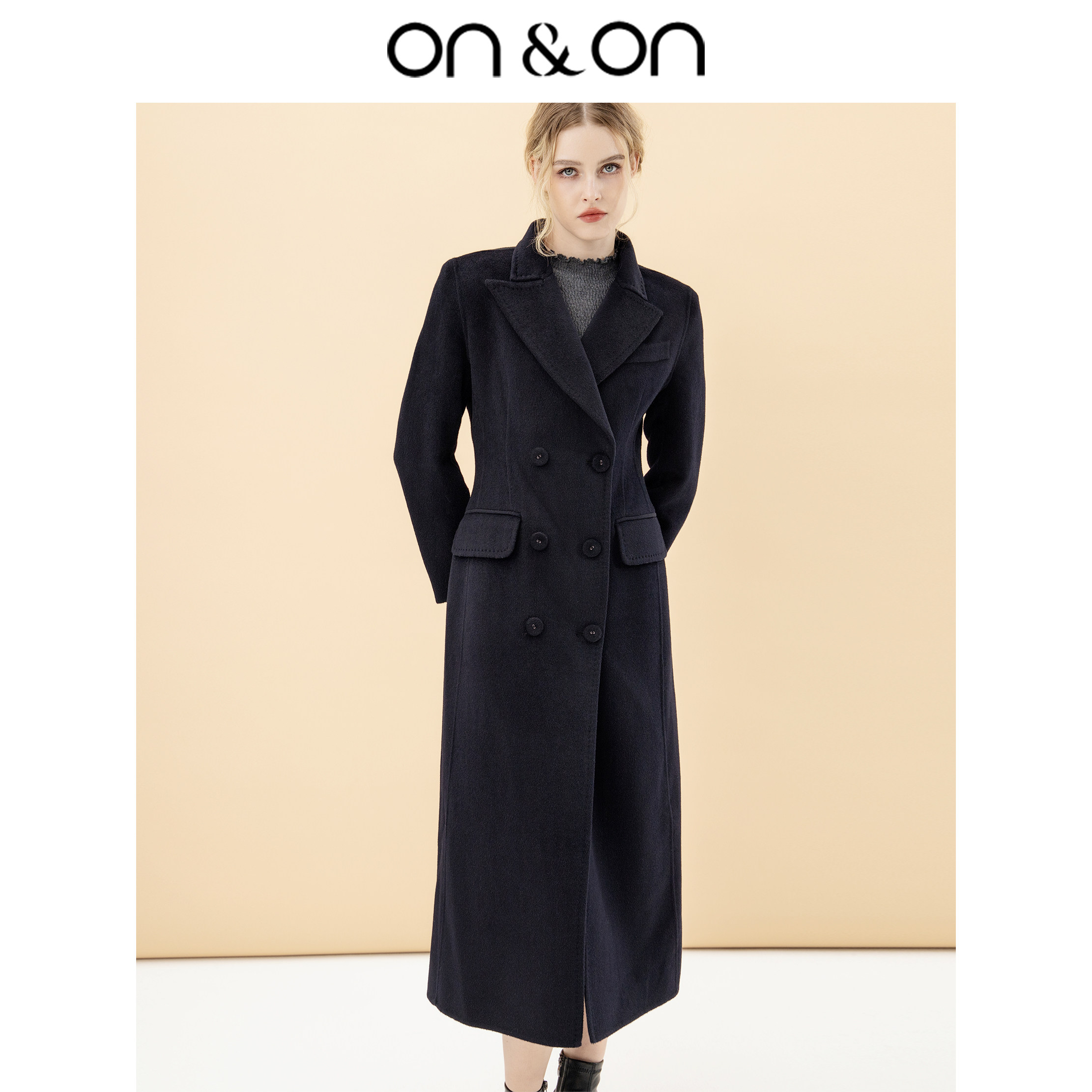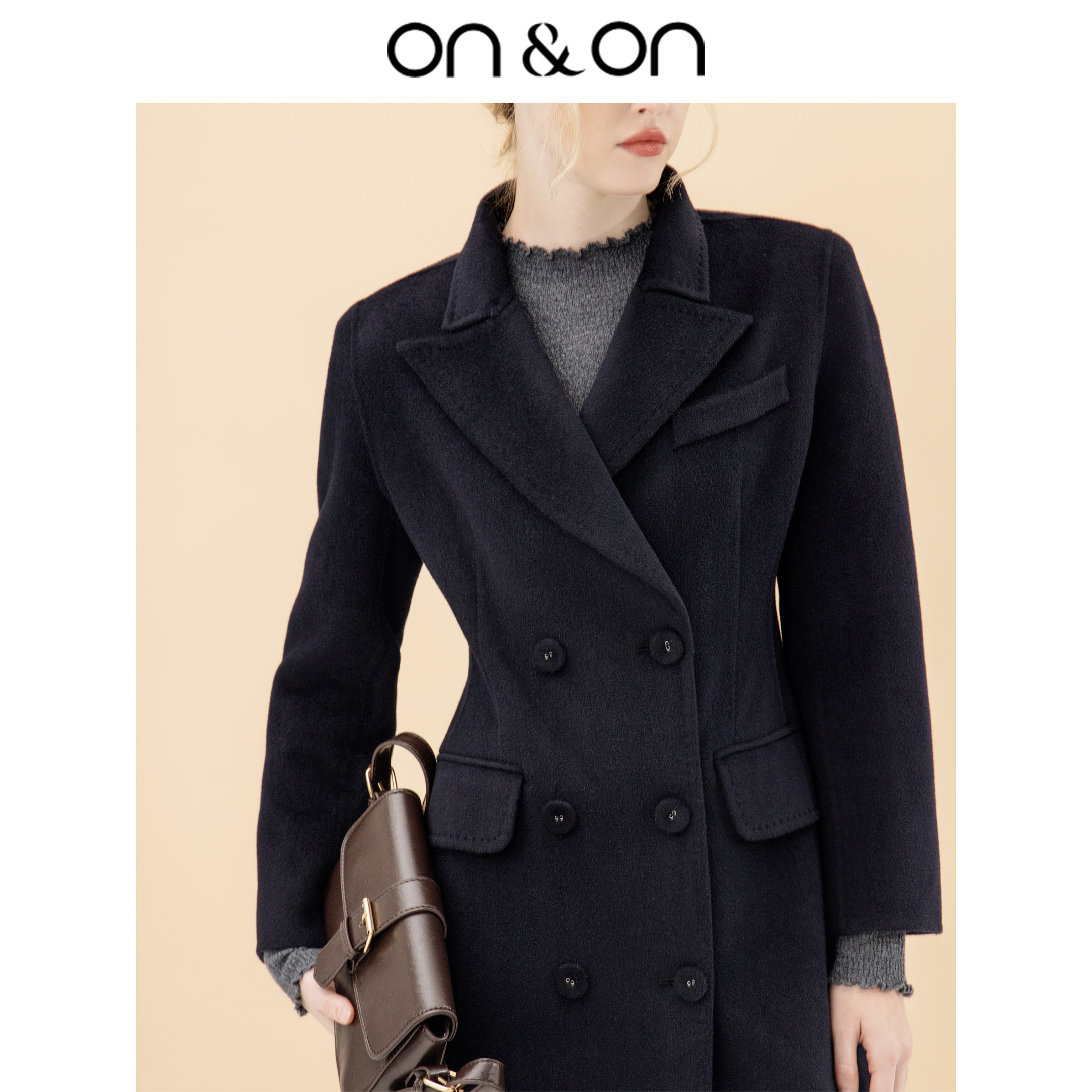 ON&ON/安乃安【琥珀智性风】精致立领双排扣收腰双面羊绒外套女