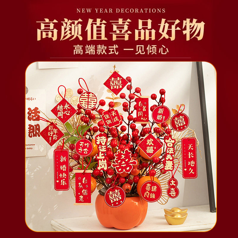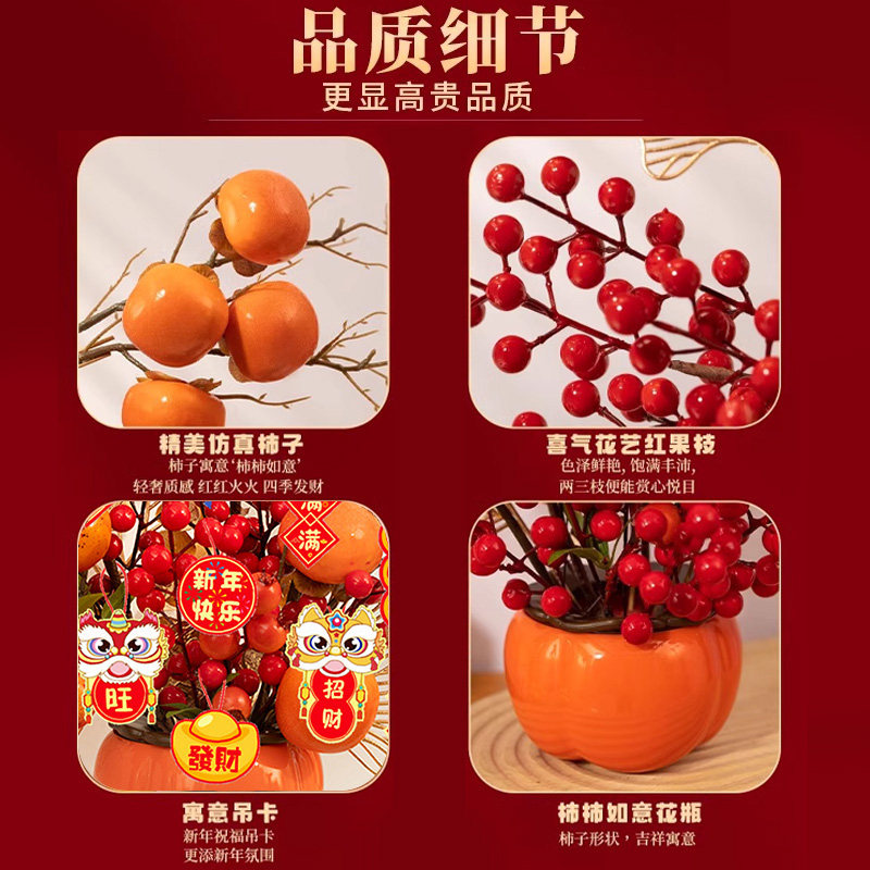 2026马年春节红色柿子福桶抱抱桶仿真花手工摆件过年喜庆装饰品