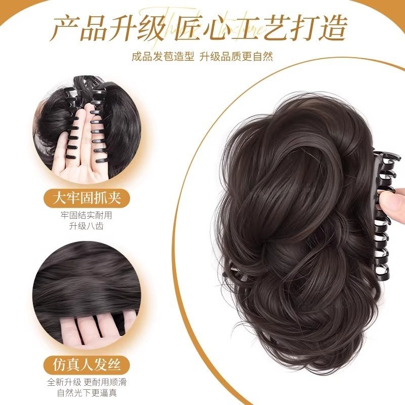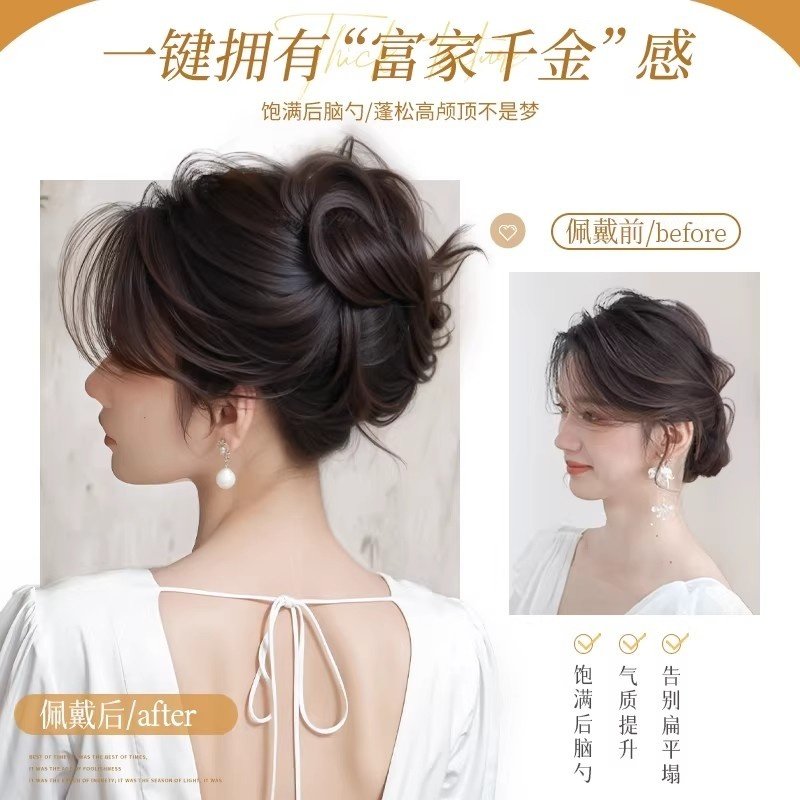 低扎丸子头假发鸡毛头抓夹盘发发包慵懒感造型头饰自然蓬松后脑勺