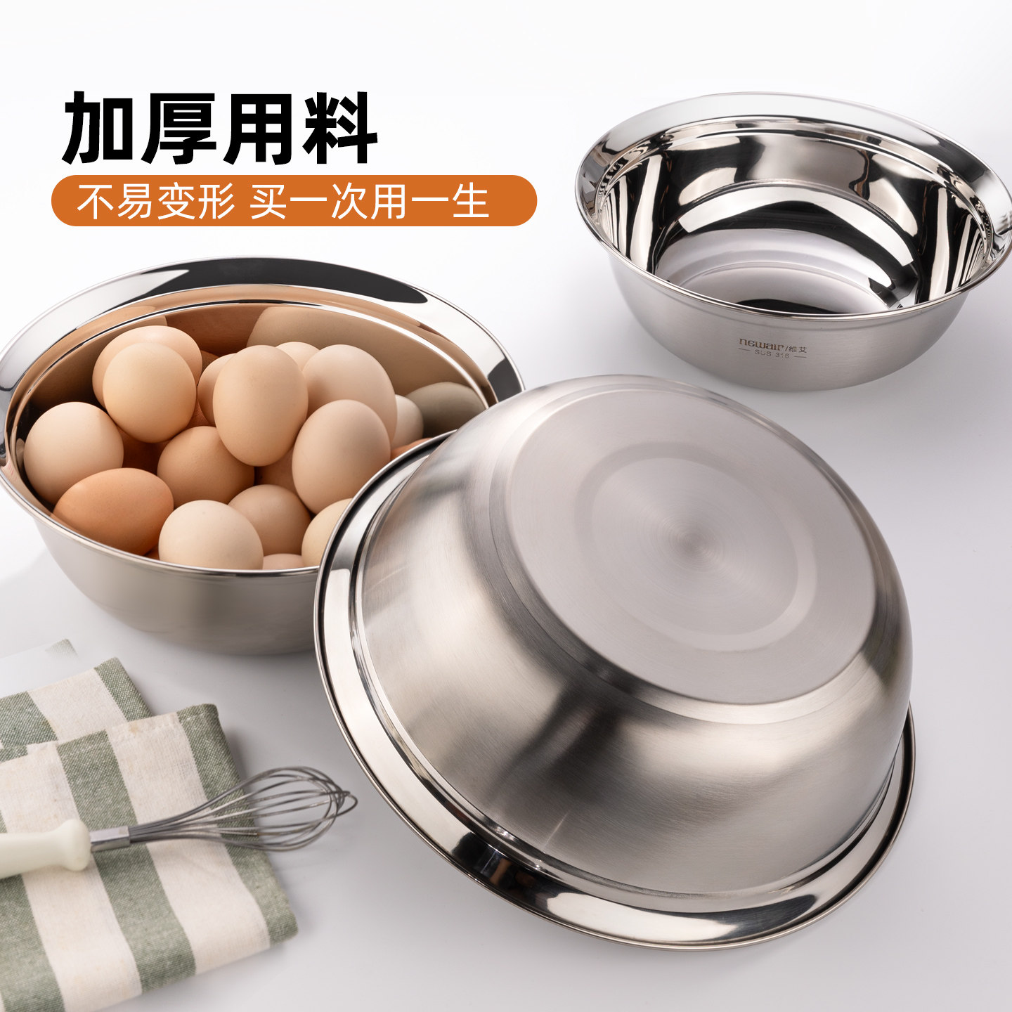 维艾316食品级不锈钢盆碗饭碗汤盆汤碗厨房家用洗菜菜盆304加厚