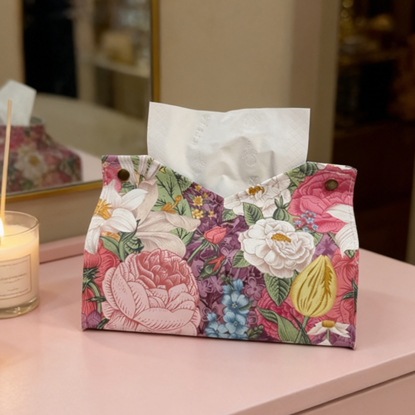 纸巾盒高级感花朵轻奢复古纸巾套家用高颜值客厅抽纸盒皮质纸巾袋