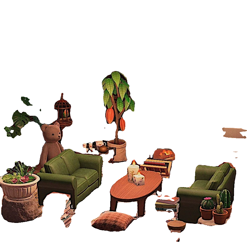 复古书房客厅 动森2.0室内小房间装饰设计动物之森家具素材造景