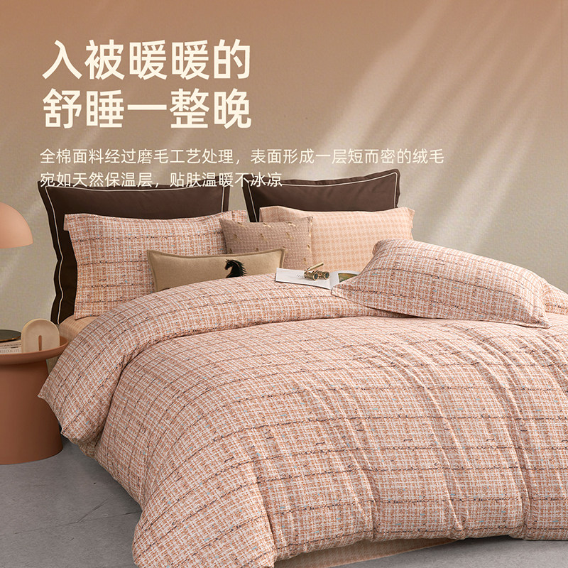 水星家纺全棉磨毛四件套纯棉抗菌加厚保暖床上用品秋冬天床单被套