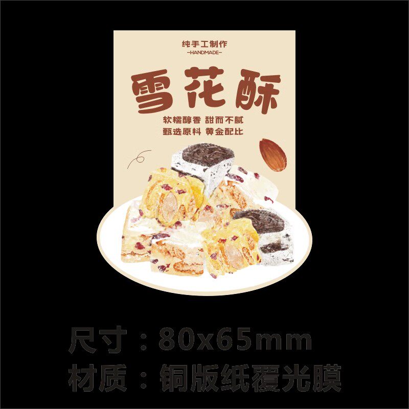 烘焙零食饼干封贴创意贴纸雪花酥杏仁瓦片核桃酥不干胶标签定制M