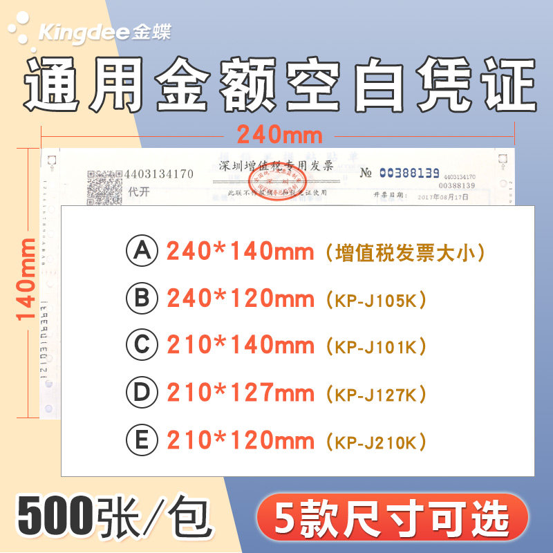 金蝶空白凭证纸240*120mm会计凭证打印纸所有软件通用空白财务凭证纸KP-J105K凭证纸打印纸500张/包