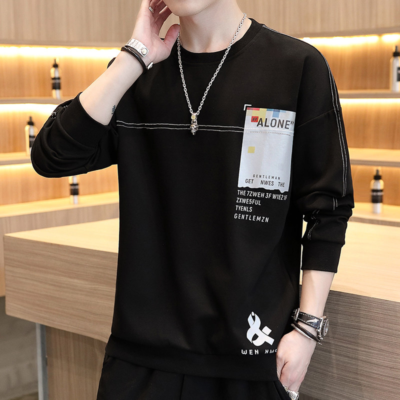 青少年卫衣男圆领潮流春装上衣服初中高中学生打底衫帅气长袖t恤