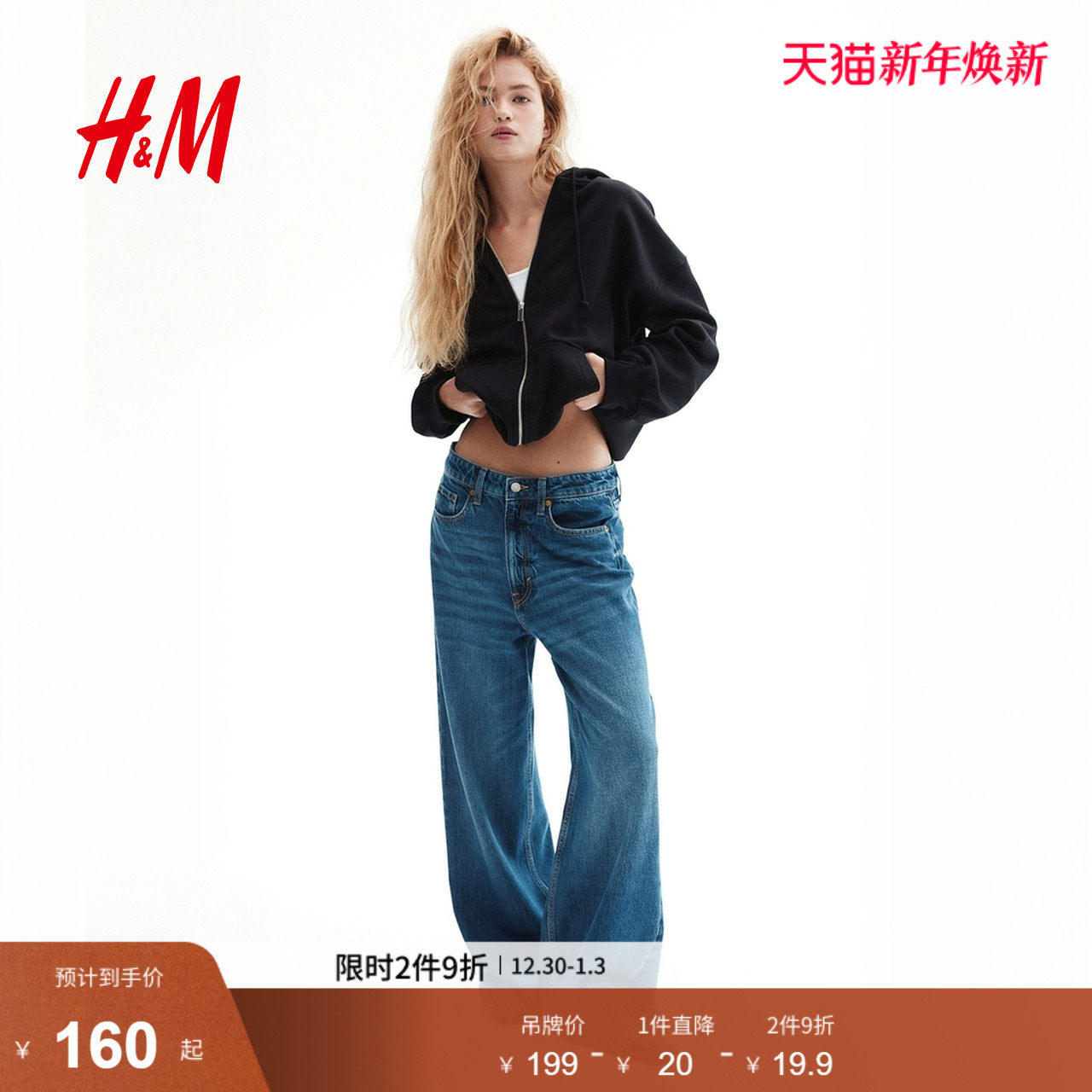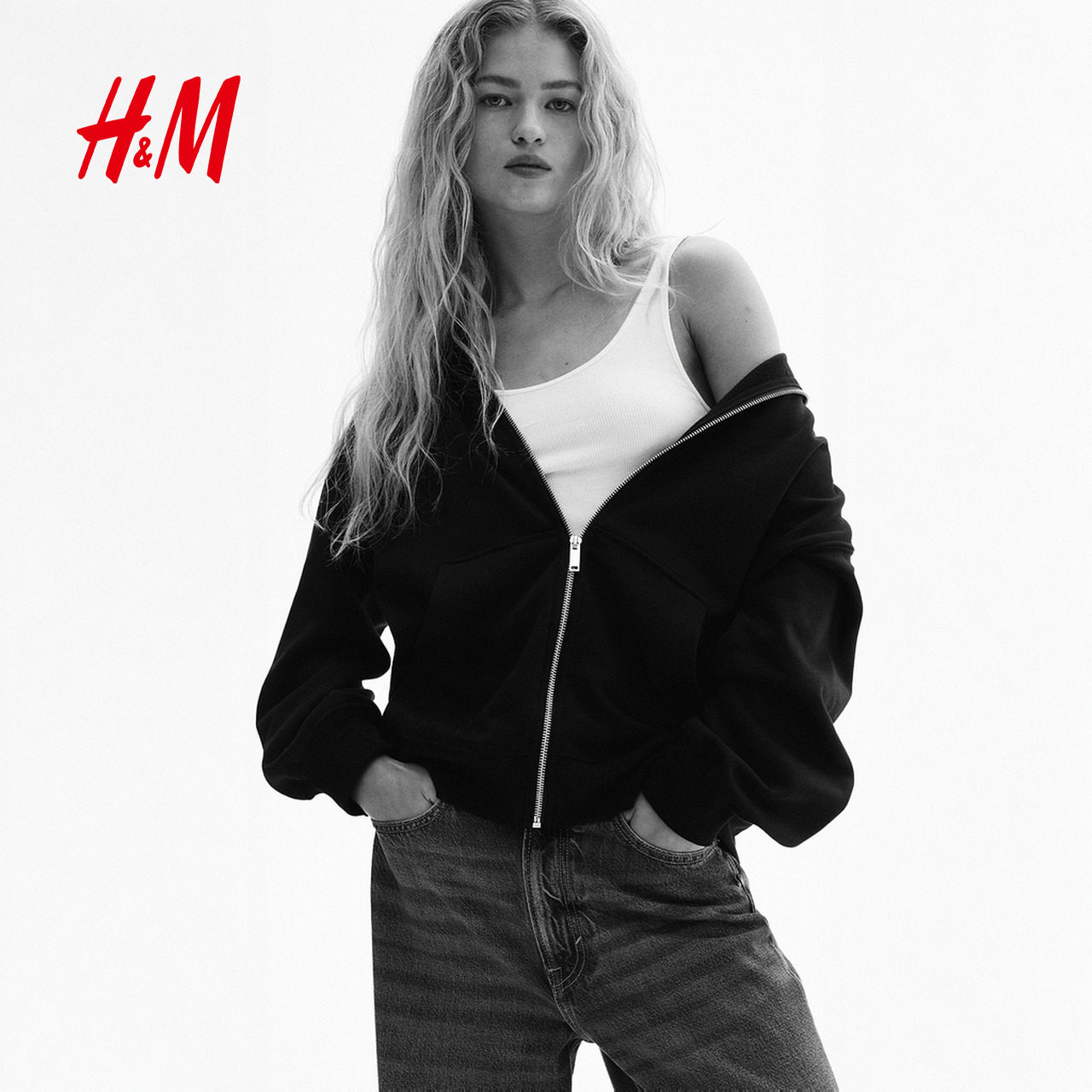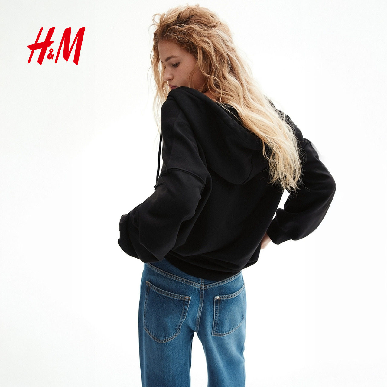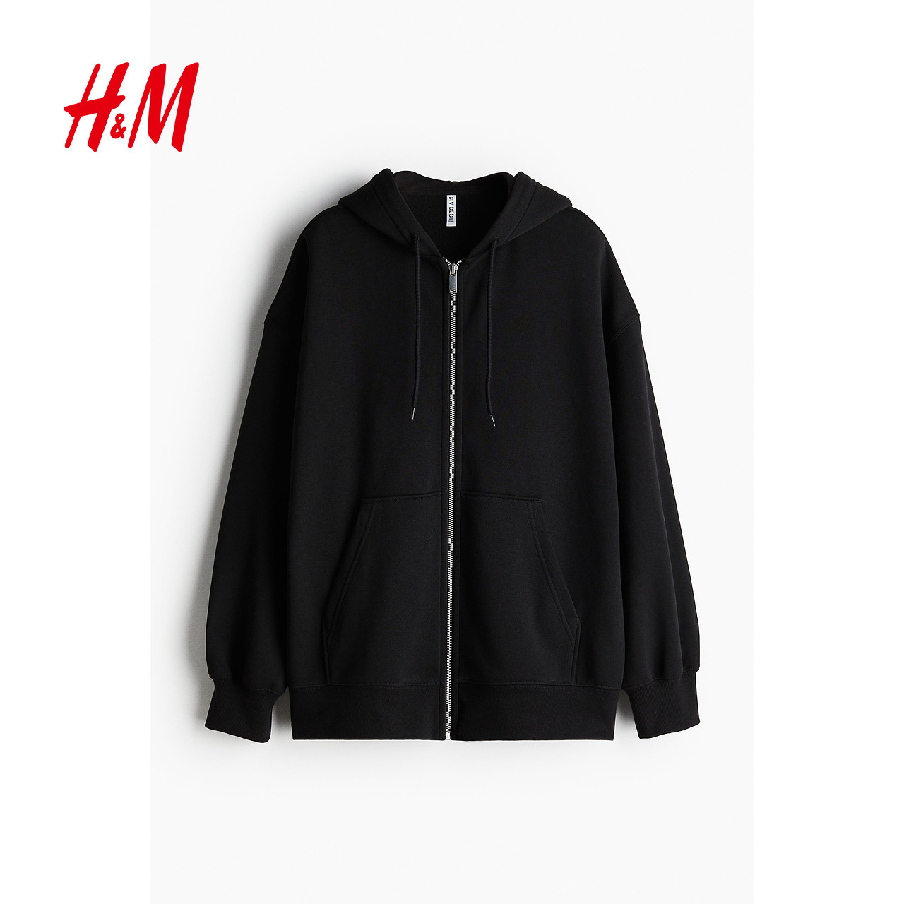 HM女装卫衣冬季舒适保暖潮流大廓形柔软内里美式连帽衫1234775