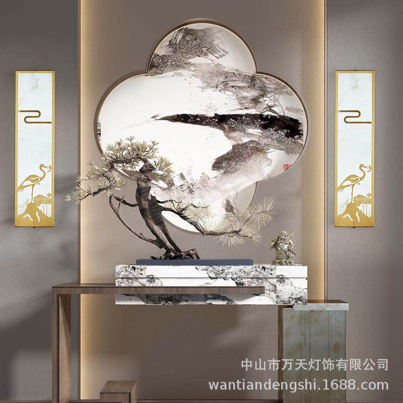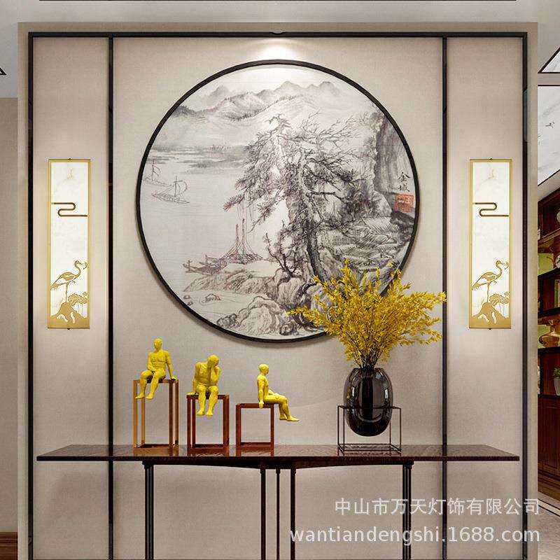新中式壁灯简约卧室床头灯禅意别墅客厅全铜云石led室内