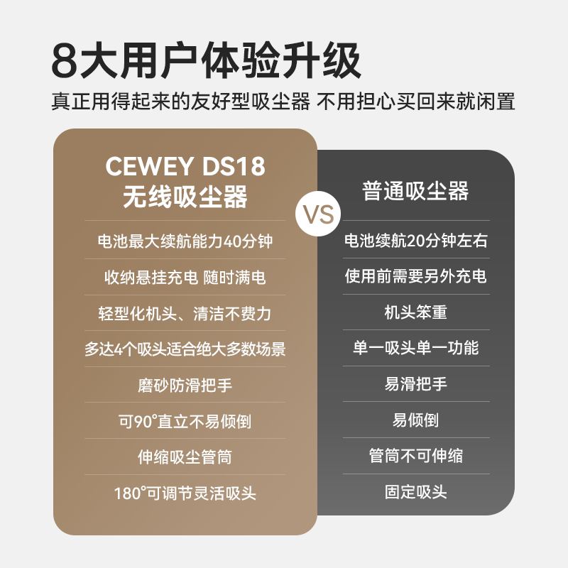 CEWEY无线吸尘器 DS18家用手持吸尘器清洁宠物毛发猫砂粉尘头发
