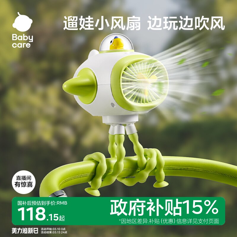 babycare婴儿车小风扇八爪鱼手持便携充电摇头外出桌面儿童宝宝手推车婴儿床装饰无叶usb吹辅食夏遛娃神器