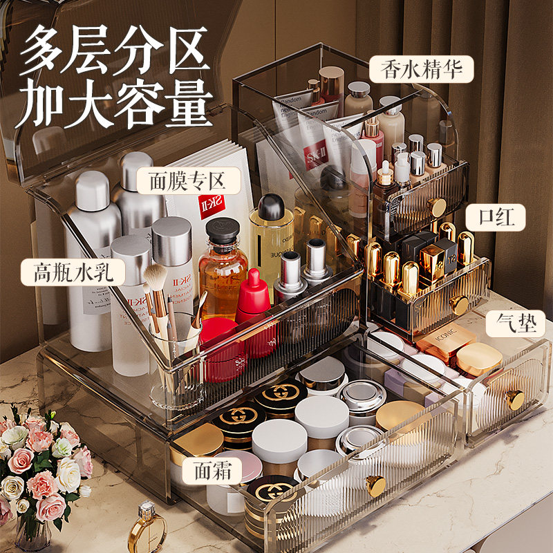化妆品收纳盒桌面防尘抽屉式高级感口红整理箱梳妆台护肤品置物架