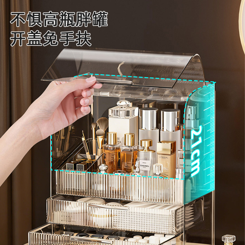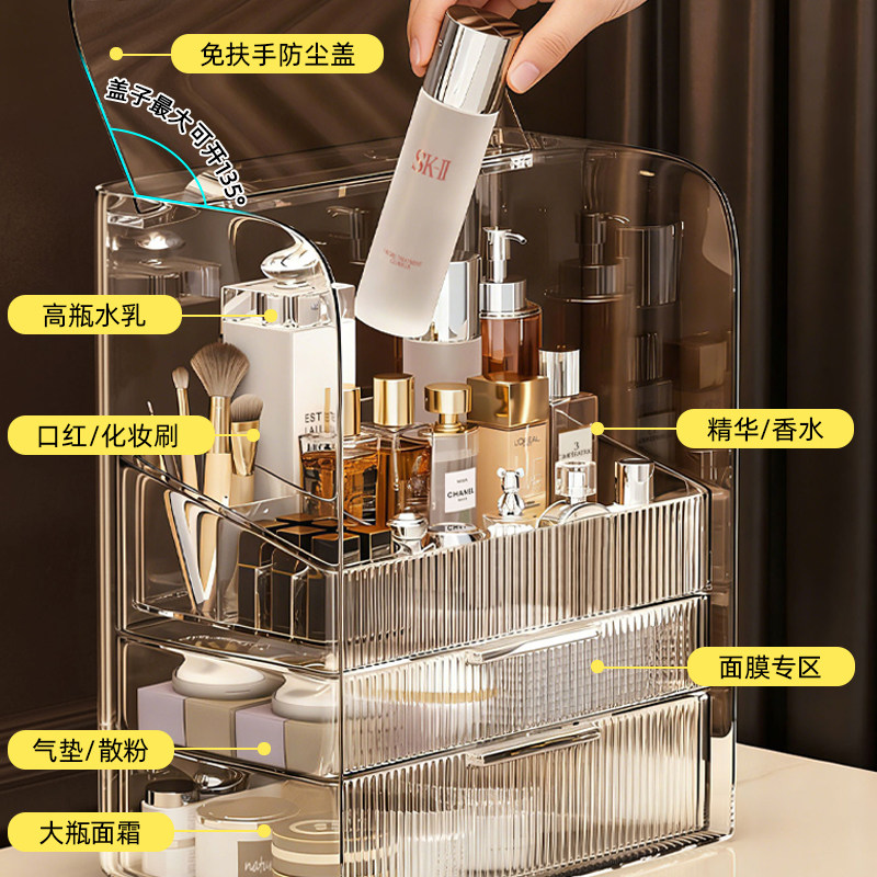 化妆品收纳盒桌面防尘透明高级感大容量化妆刷整理箱护肤品置物架