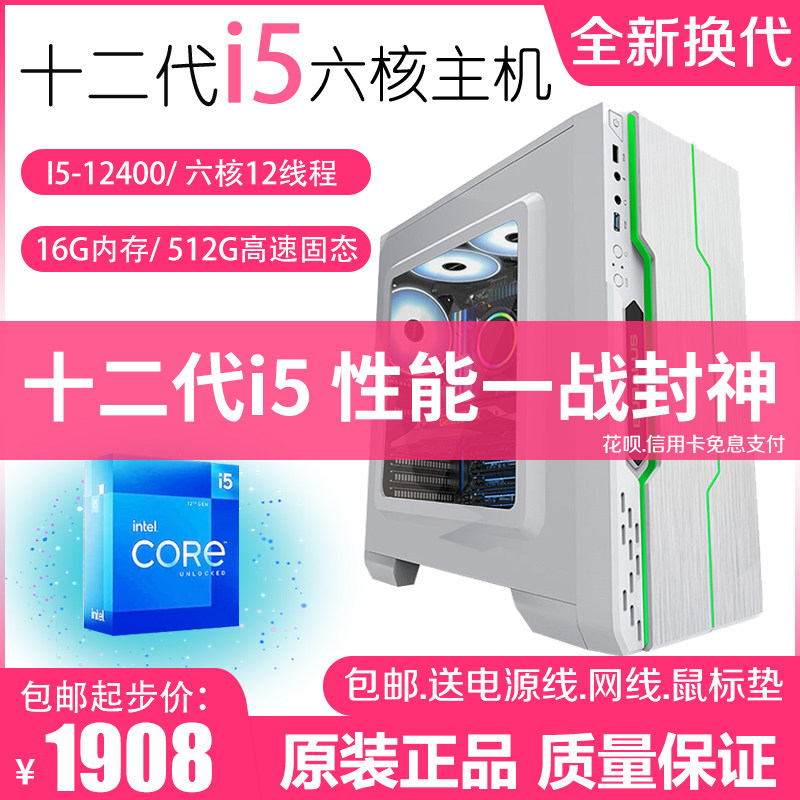 12代i5-12400六核办公商务游戏主机台式组装电脑设计渲染视频剪辑