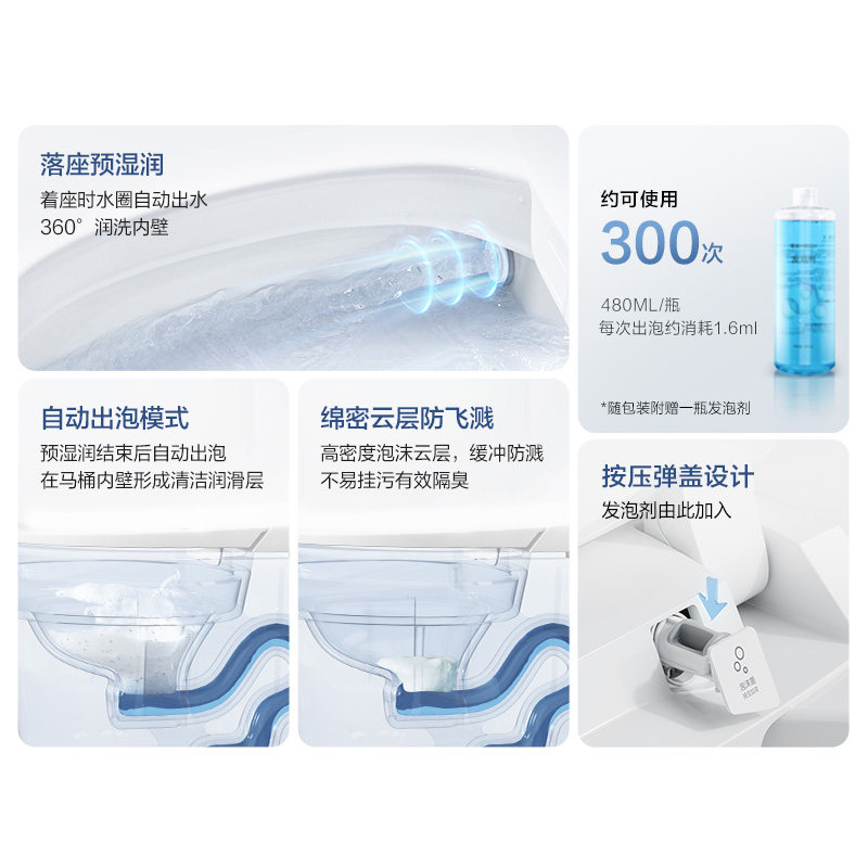 舒沐洗,泡沫盾防溅隔臭,智控翻盖脚感冲水