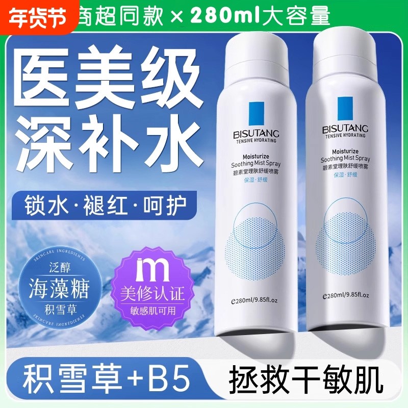 B5积雪草补水喷雾小分子保湿化妆前湿敷爽肤水男女士舒缓修复正品