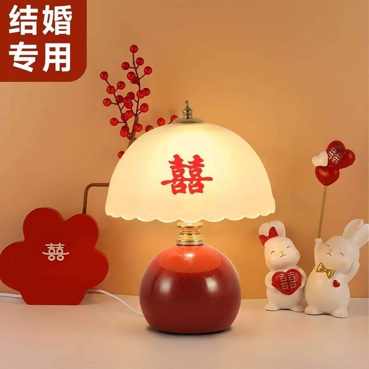 长明灯结婚一对礼物送新人婚房蘑菇灯台灯喜灯新婚床头灯陪嫁家用