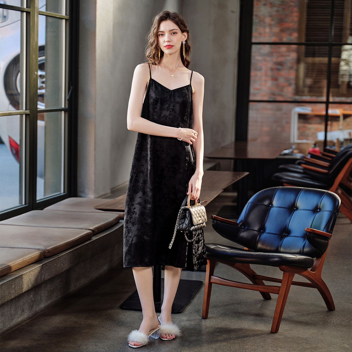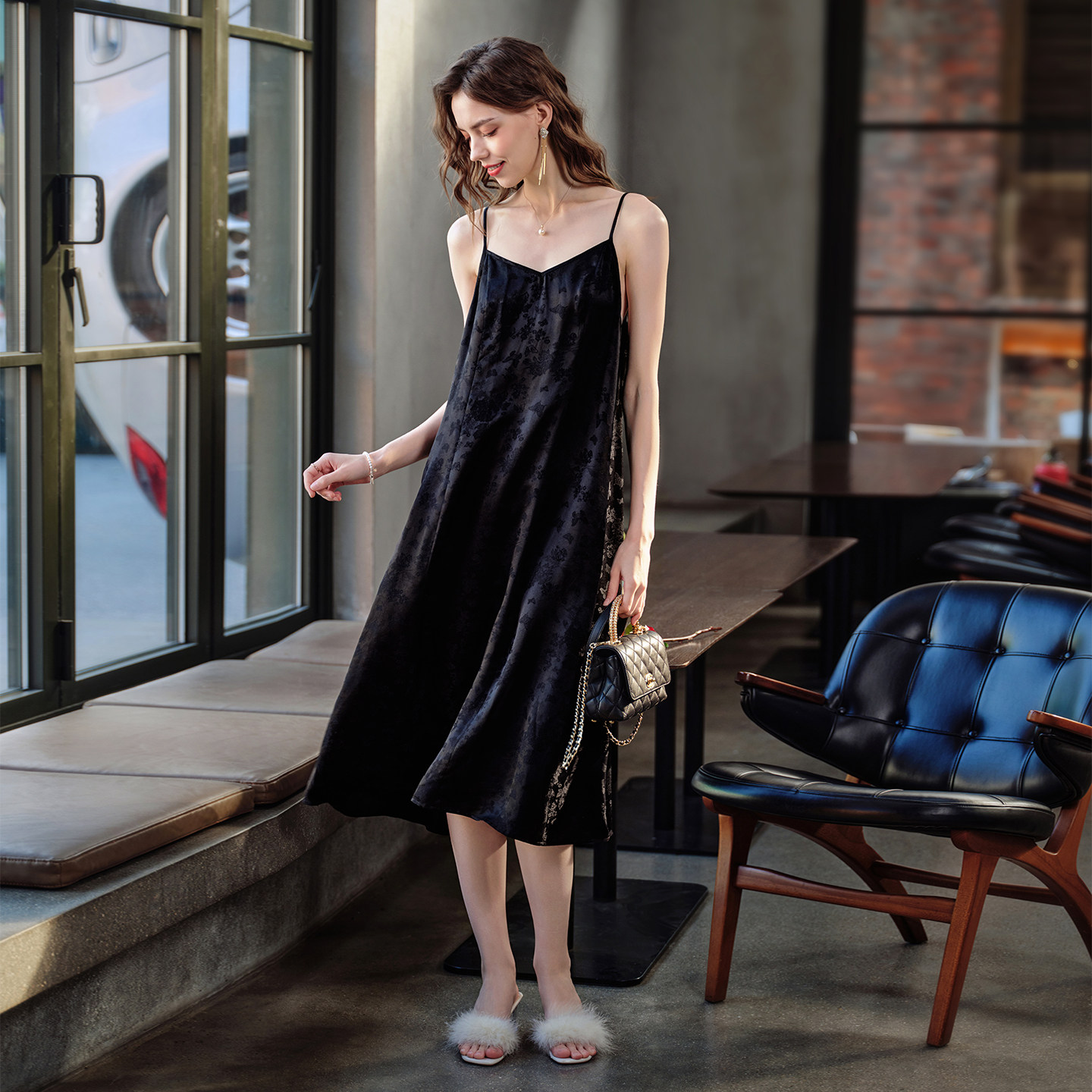美标2026春夏新款丝绸吊带睡裙女23姆米桑蚕丝提花性感长裙家居服