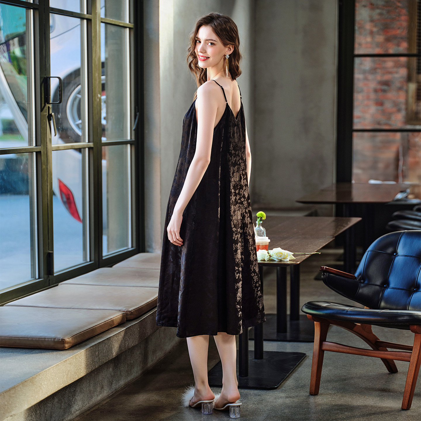 金三塔凉感真丝吊带裙100%桑蚕丝纯欲风睡衣真丝性感睡裙家居服女