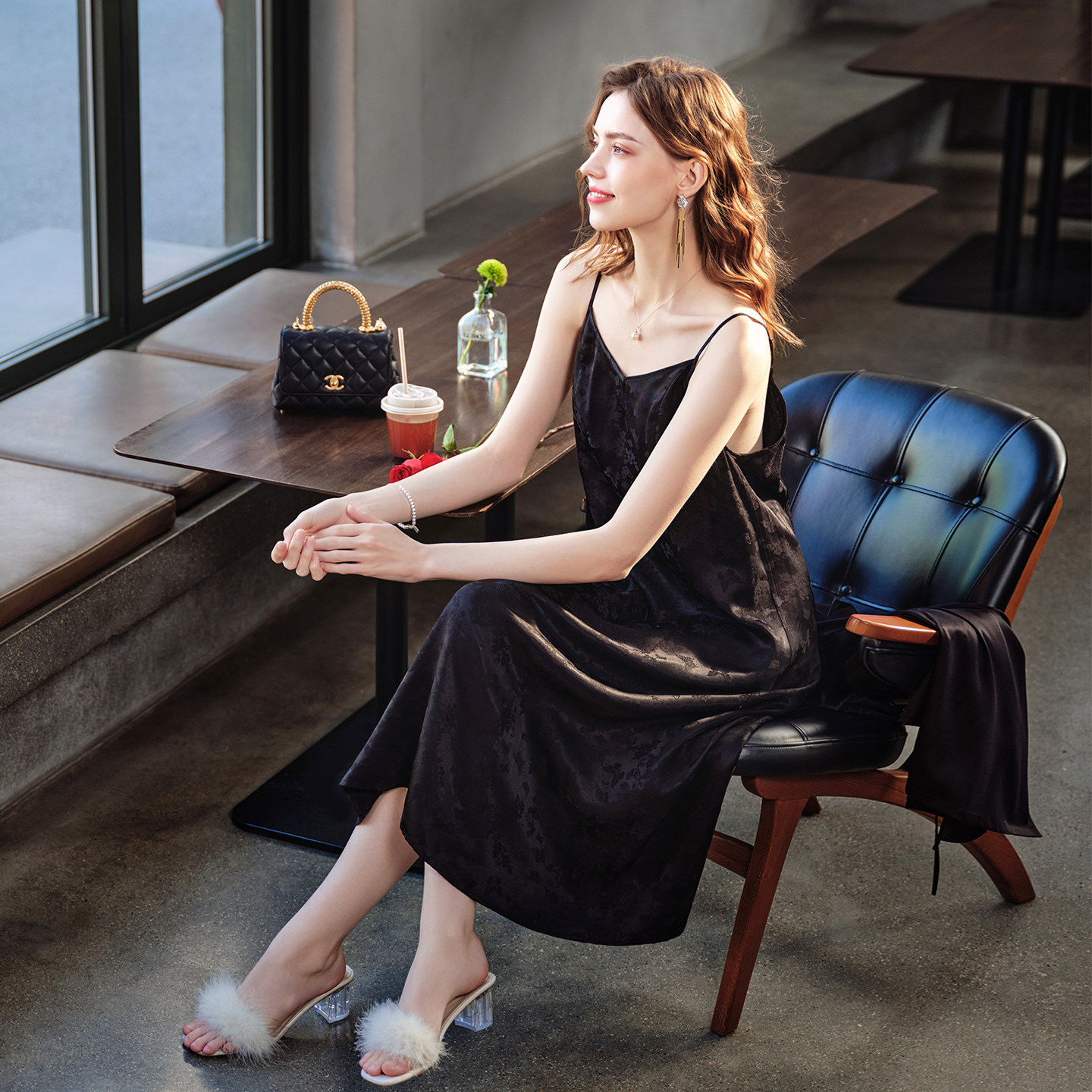 金三塔重磅真丝睡裙性感荡领100%桑蚕丝吊带睡衣女丝绸纯欲风新款