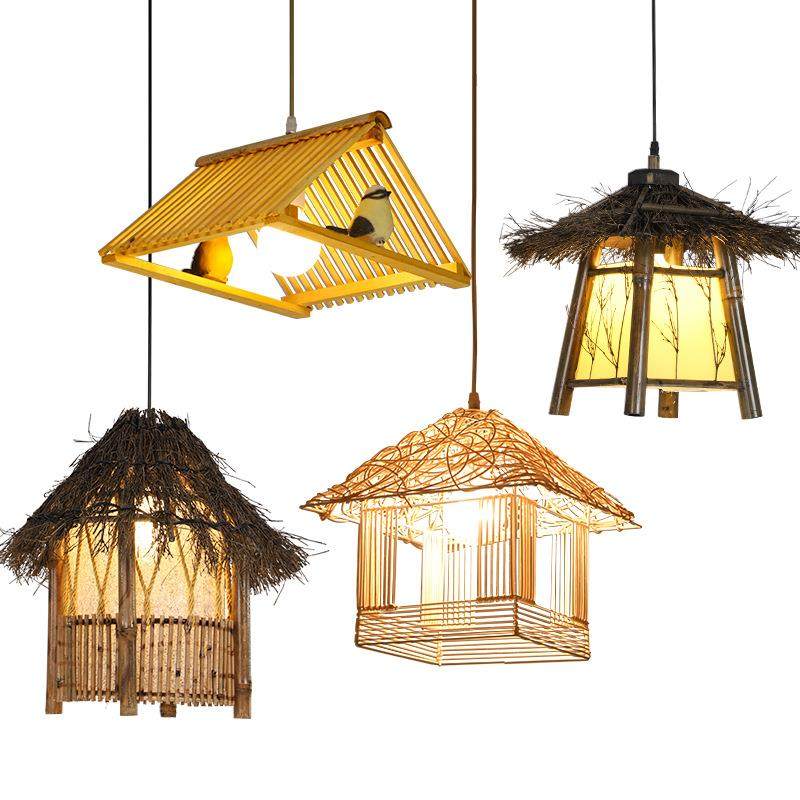 鱼形吊灯鲤鱼中式灯饰创意茶楼农家乐藤编草帽餐厅蜡烛家用