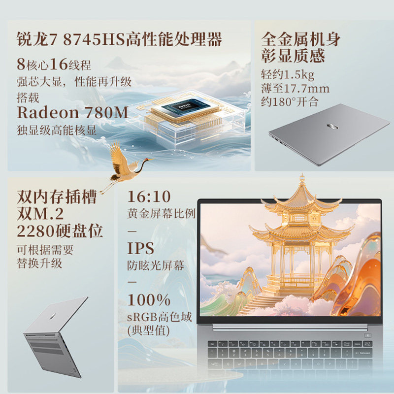 2025新款联想瑞天14锐龙R7-8745HS 14英寸轻薄便携笔记本炒股影视家用适可电脑学生时尚差旅商务办公ThinkPad