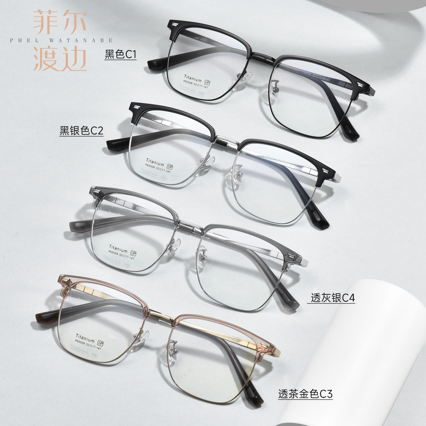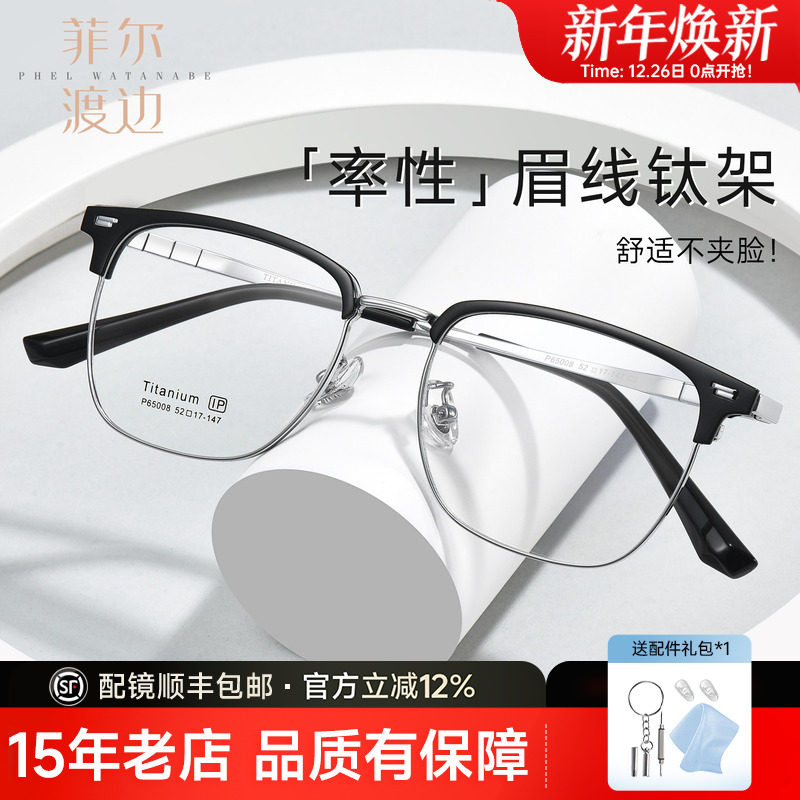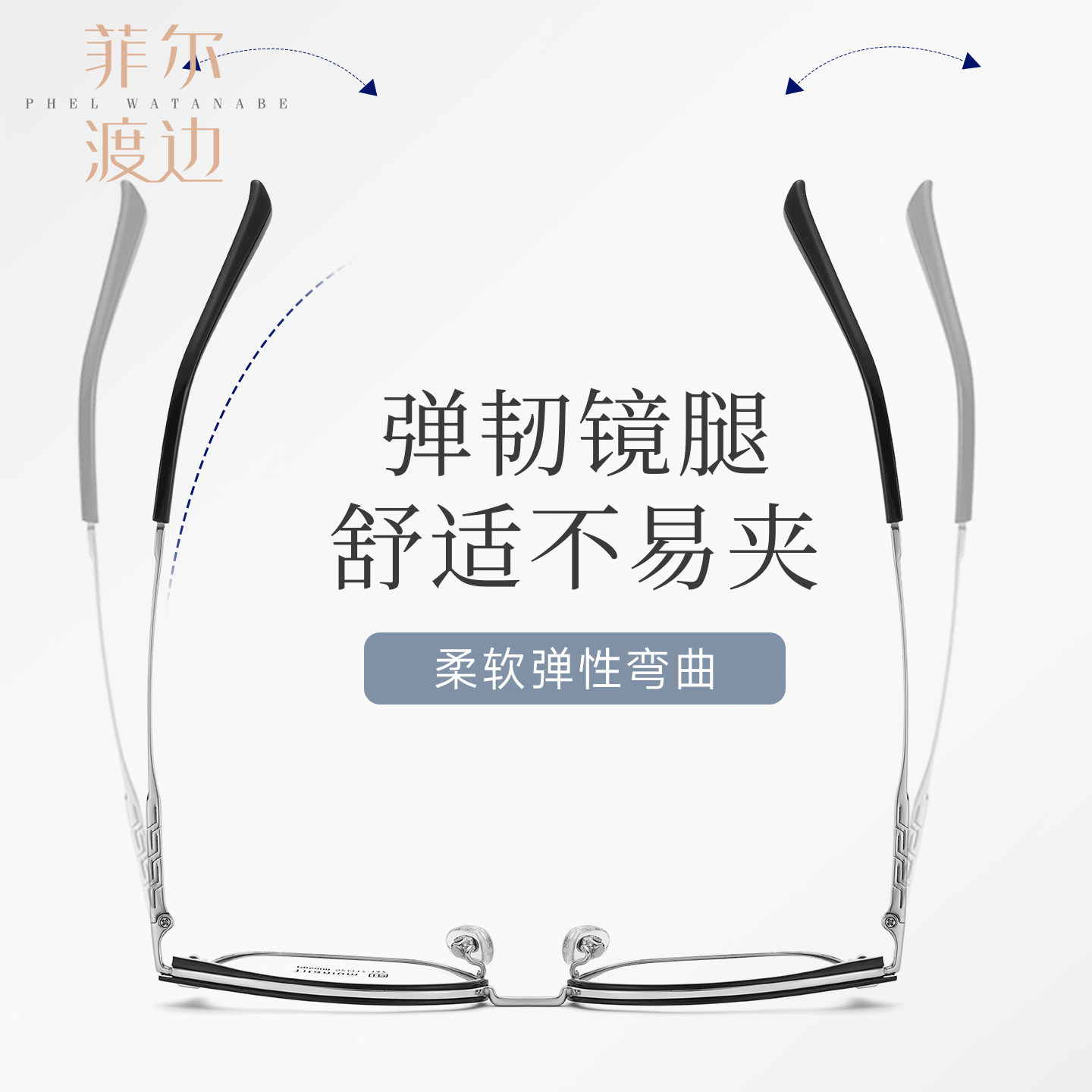 菲尔渡边眉线框半框钛架眼镜框男士轻奢潮可配度数近视散光65008