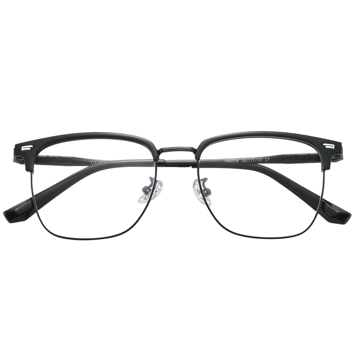 德国纯钛半框近视眼镜男款可配度数商务简约防蓝光镜片超轻镜架女
