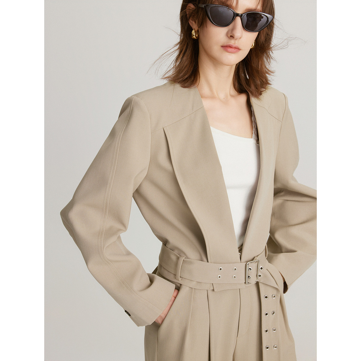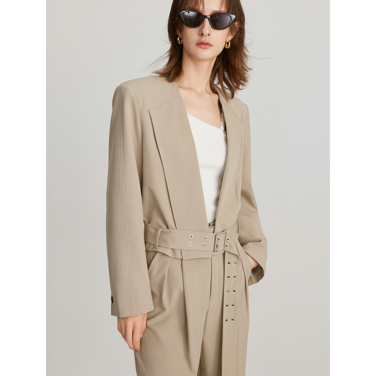 COCOBELLA高智感拼接人丝无领西装女早春通勤休闲气质外套SI533B
