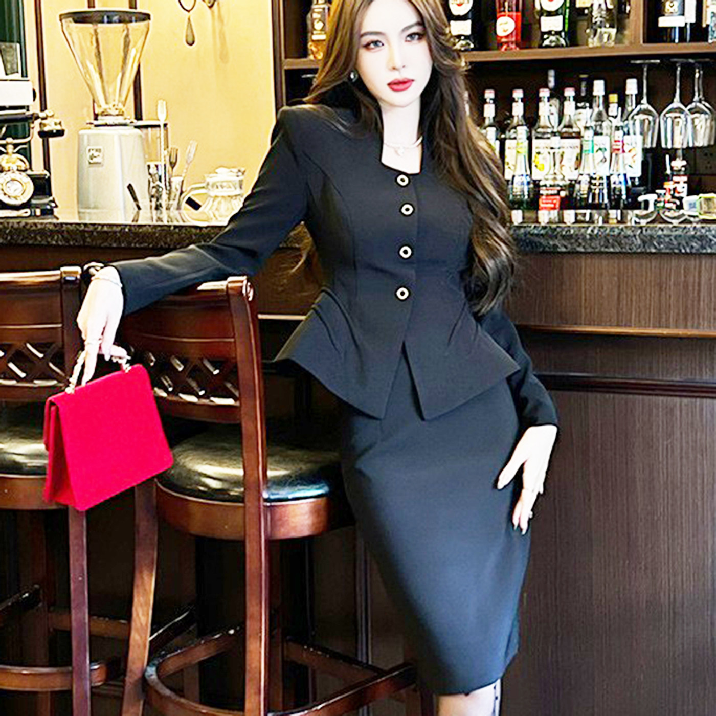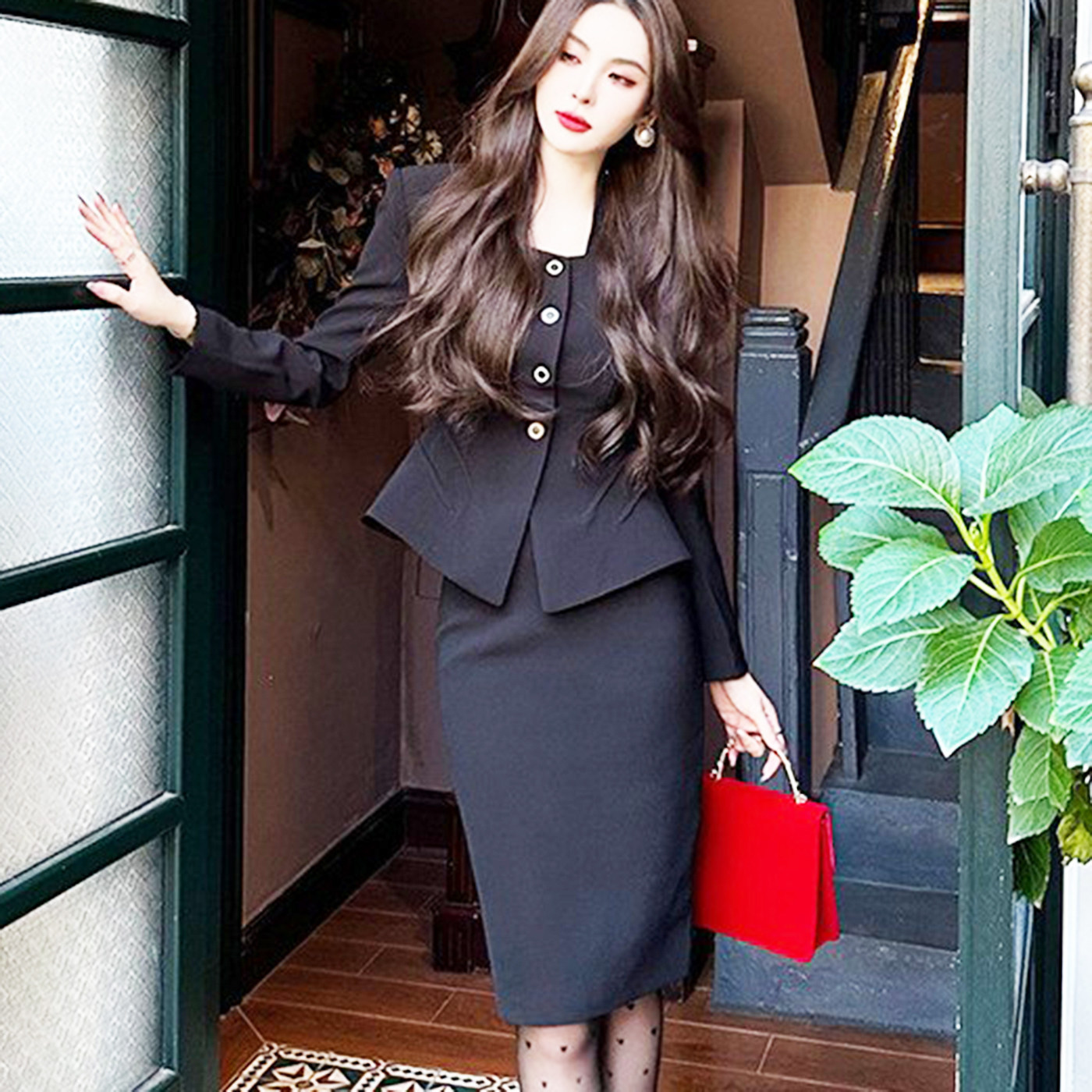 高级韩系设计感时尚洋气质赫本职业通勤商务正装修身装西装套装裙