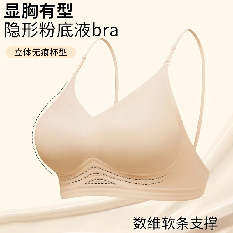 无痕内衣女小胸聚拢夏季薄款运动一体美背心式固定杯无钢圈文胸罩
