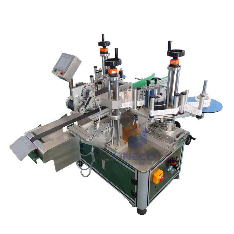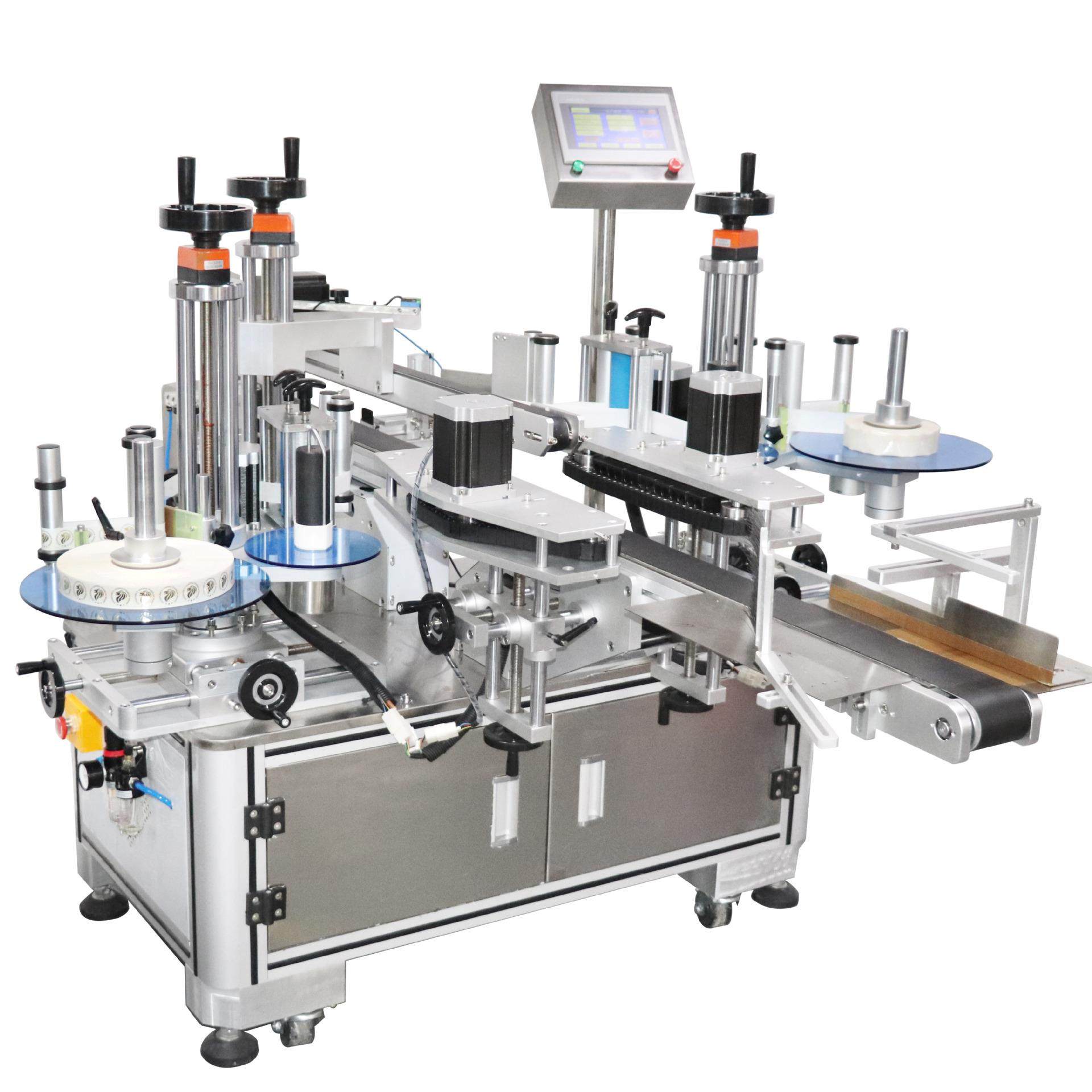 全自动双面转角贴标机纸盒疫苗彩盒直角防伪码封口PE纸箱拐对角贴