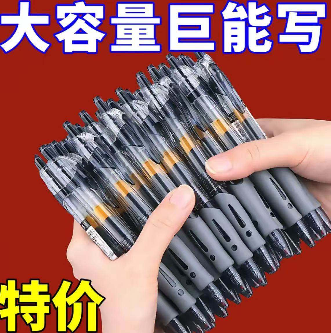 国风桶装刷题笔速干顺滑黑笔高颜值按动中性笔ST0.5黑色笔芯水性圆珠笔小学生专用考试笔非按斤卖碳素签字笔