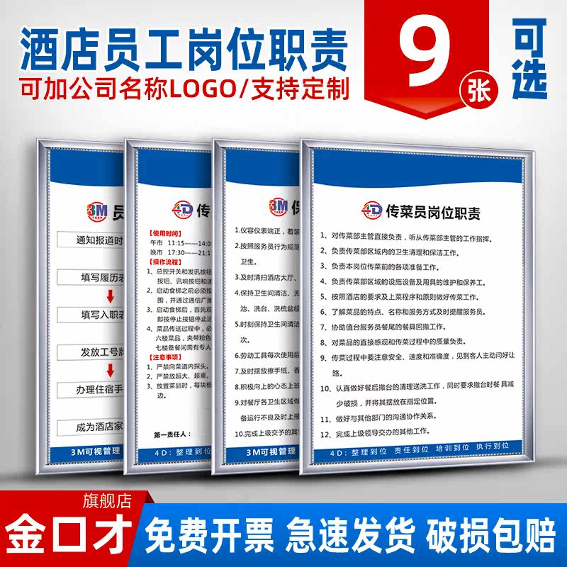 酒店餐厅员工岗位职责食堂饭店厨房制度标语牌店长服务员收银员保洁员传菜部食梯说明入职流程图学校食品管理