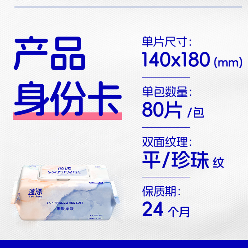 蓝漂湿巾纸手口专用儿宝宝清洁纯水加厚湿纸巾家庭实惠装
