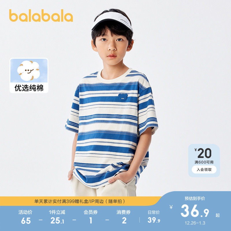 巴拉巴拉童装短袖t恤男童新款夏装纯棉条纹休闲上衣女童百搭衣服