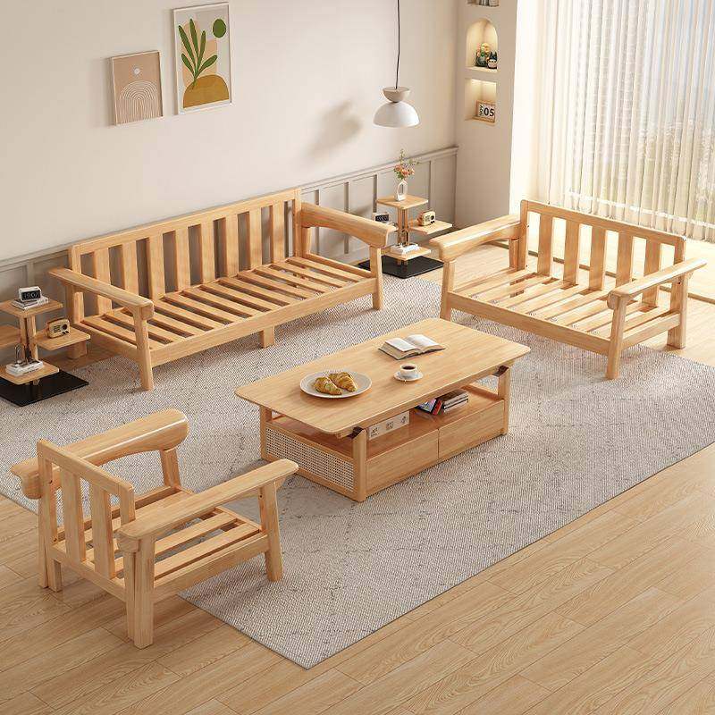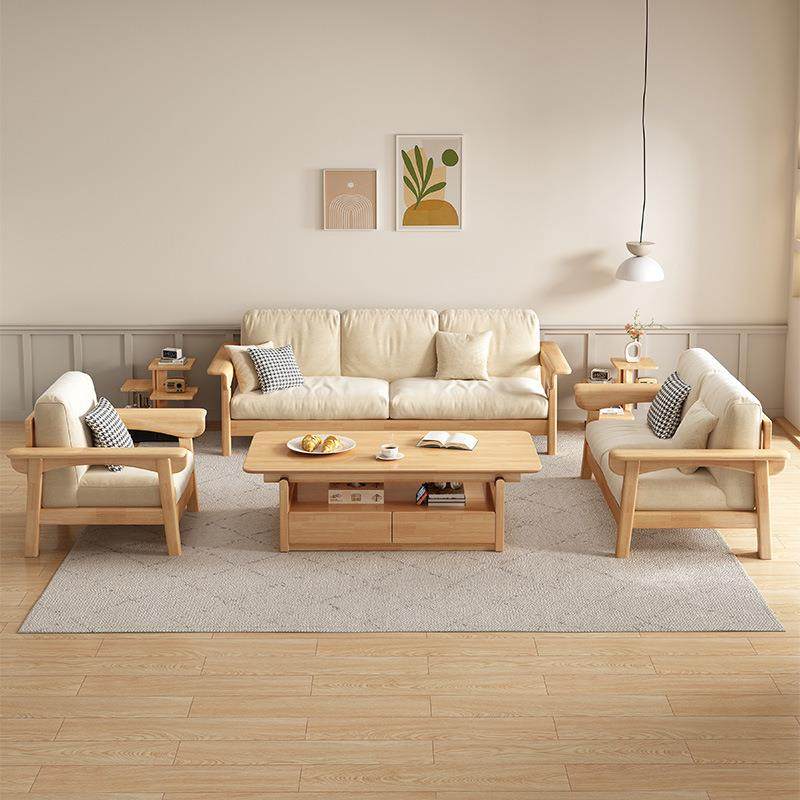 实木沙发现代简约小户型可拆洗布艺原木色直排组合三人位客厅家具