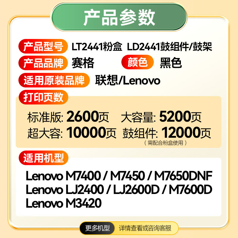 适用联想M7400硒鼓LT2441粉盒LJ2400L M7650 7600D 7450F打印机LD2641墨盒M7650DNF墨粉2650DN鼓架3420复印机