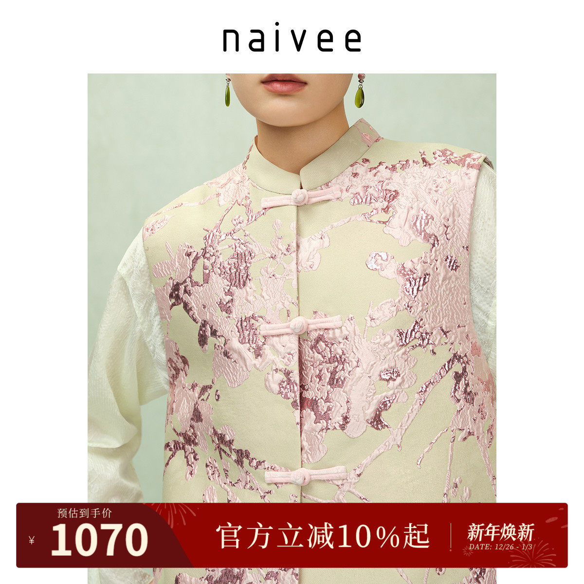 桃红柳绿马甲』naivee纳薇25秋新款新中式宋式锦提花无袖国风马甲