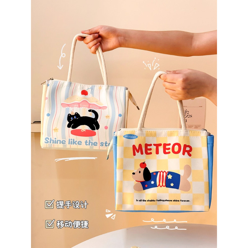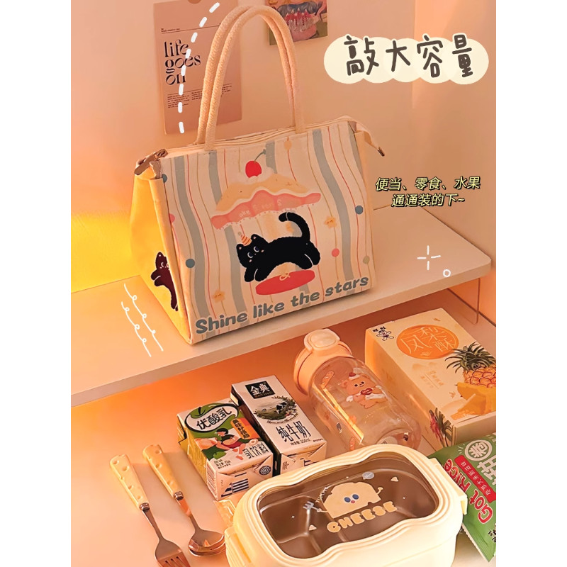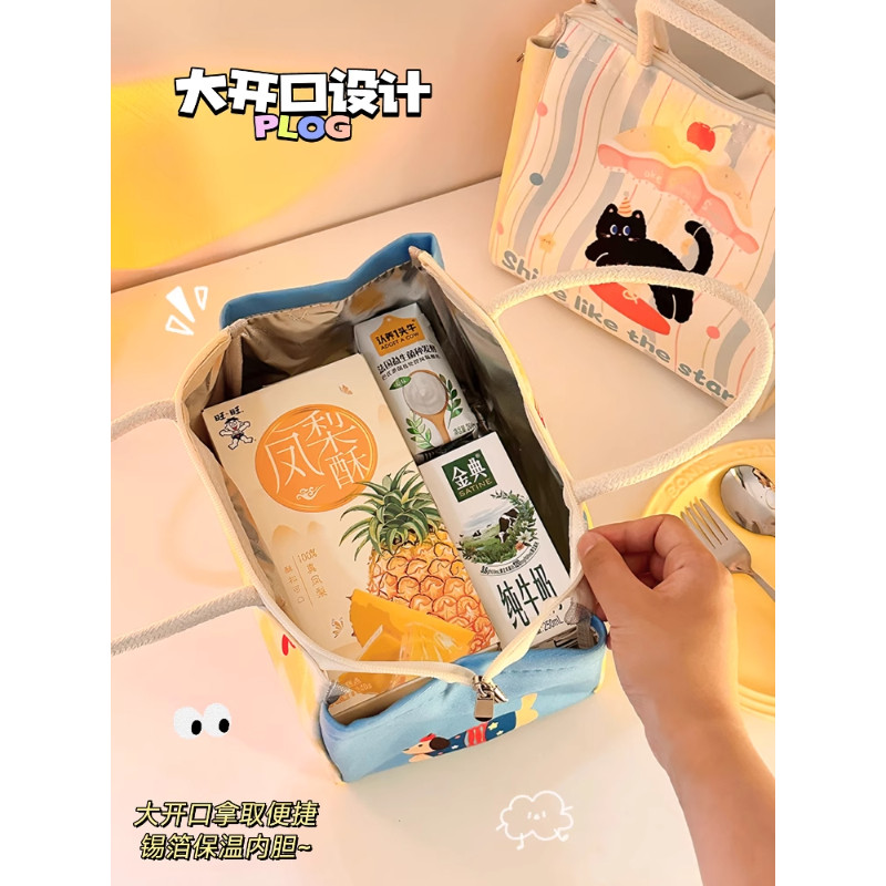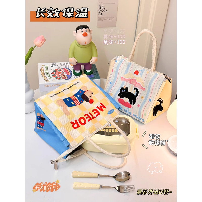 可爱饭盒手提袋子学生上班族带饭保温袋便当包外出野餐包大容量