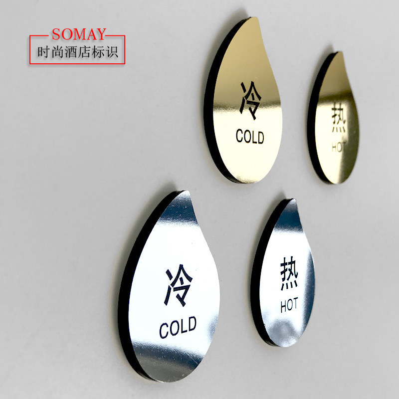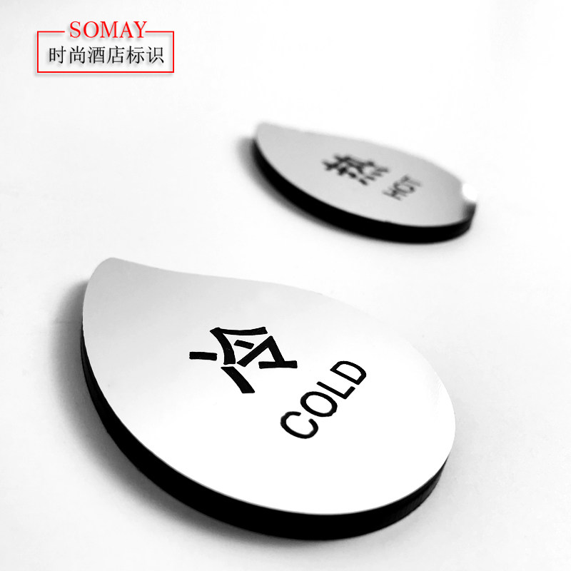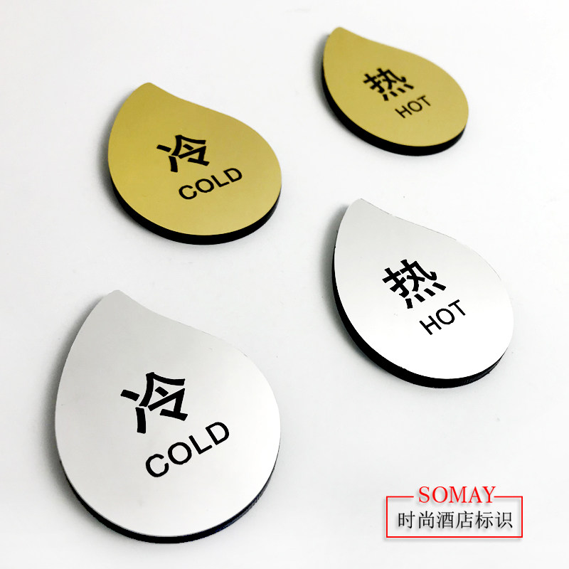 淋浴房冷热水标识贴冷热水提示标牌酒店浴室水龙头指示贴开关标识