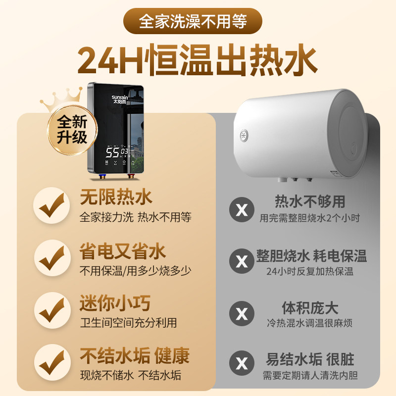 太阳雨即热式电热水器家用小型恒温浴室淋浴专用租房洗澡热水神器