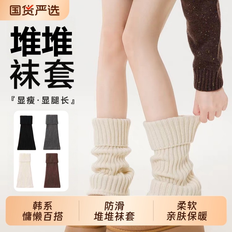 白色袜套堆堆袜女秋冬季保暖显瘦小腿袜加厚防滑护膝百搭中筒袜子